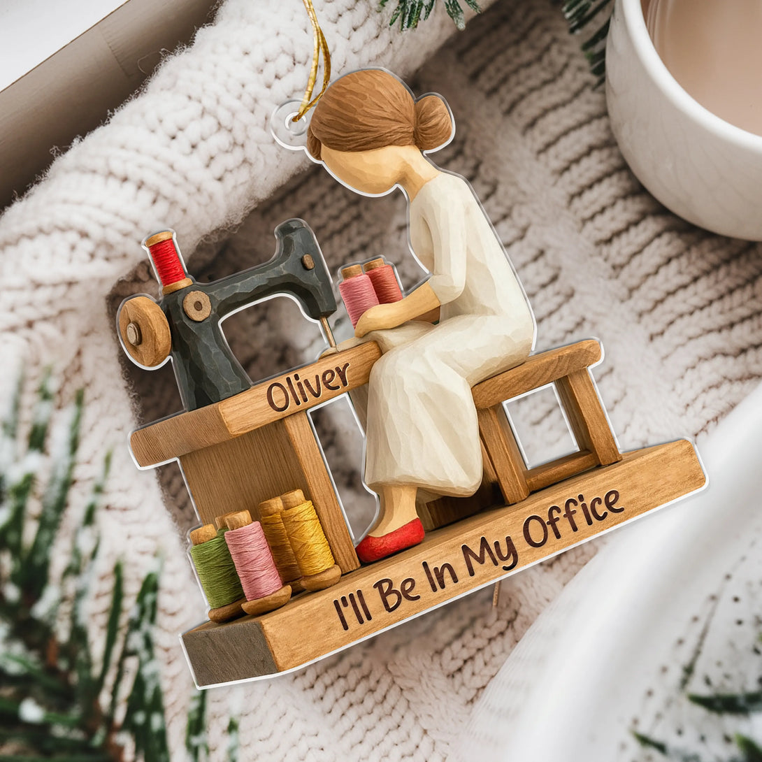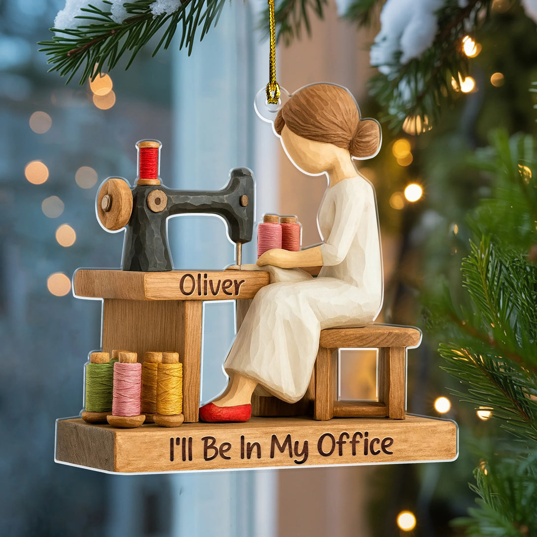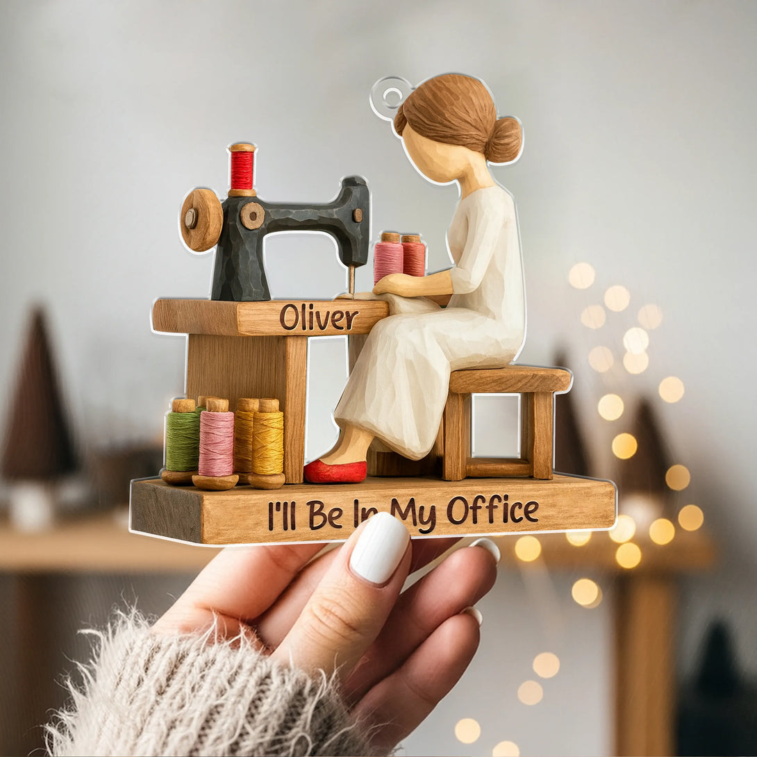 Celebrate your love for sewing with this Personalized "I'll Be In My Office" 3D Effect Acrylic Ornament. Featuring a charming design of a woman sewing, this ornament is perfect for seamstresses, tailors, and craft lovers. Add your name to make it truly yours or gift it to someone who finds peace and joy behind the sewing machine. A meaningful keepsake that adds warmth and creativity to any Christmas tree.