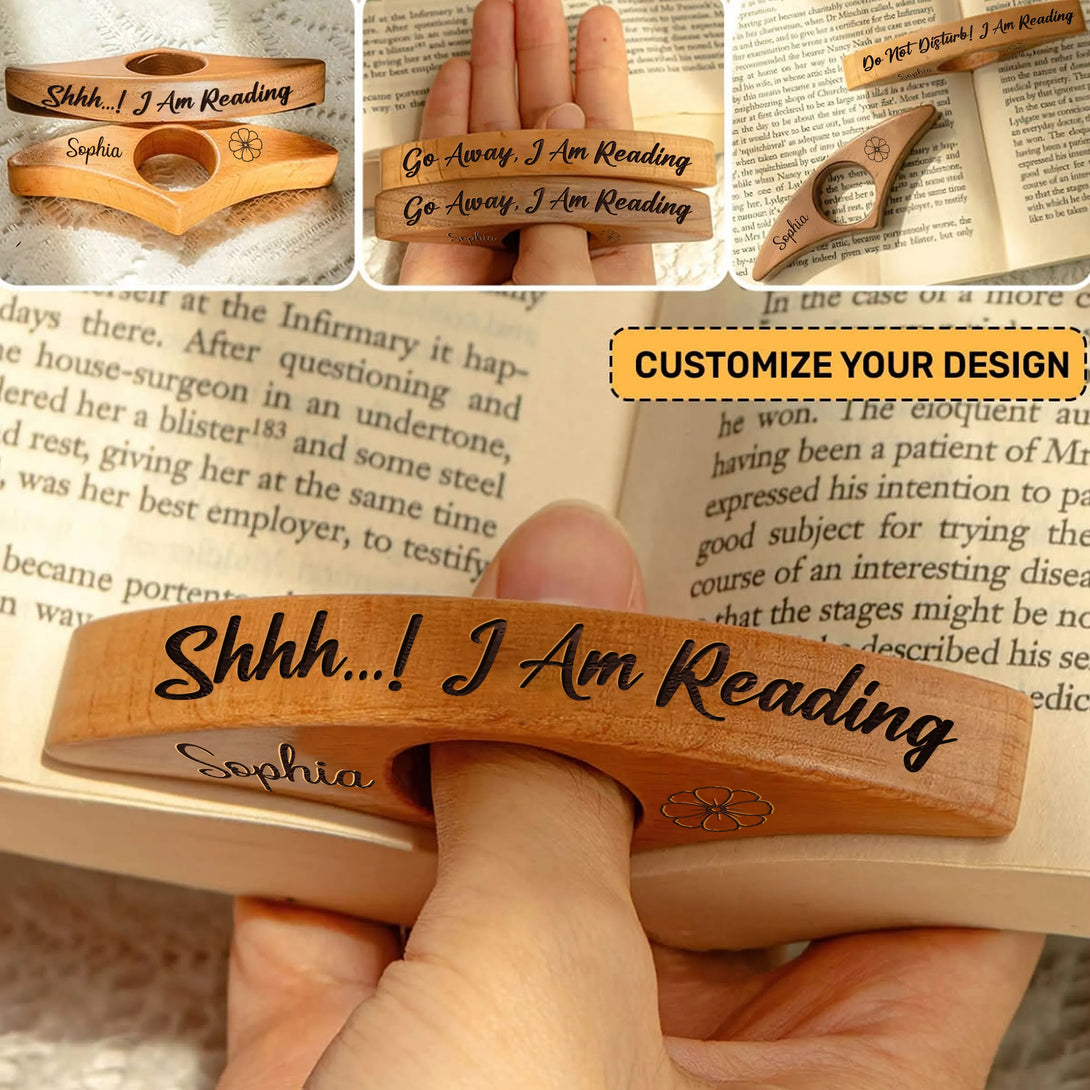 Keep your reading moments peaceful and hands-free with this Personalized I'm Reading Funny Book Page Holder. Beautifully crafted from solid wood and engraved with fun quotes like “Shhh...! I’m Reading” or “Go Away, I’m Reading”, this unique accessory holds your pages open effortlessly so you can enjoy your book with one hand. Customize it with your name or message to make it a special keepsake or gift for any book lover. Perfect for birthdays, anniversaries, holidays, or simply to treat yourself.
