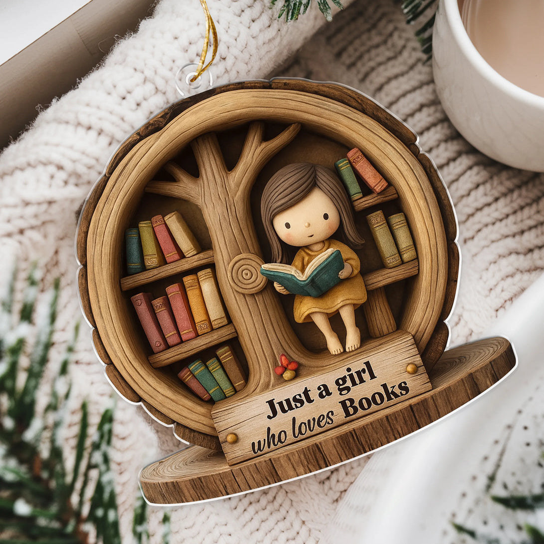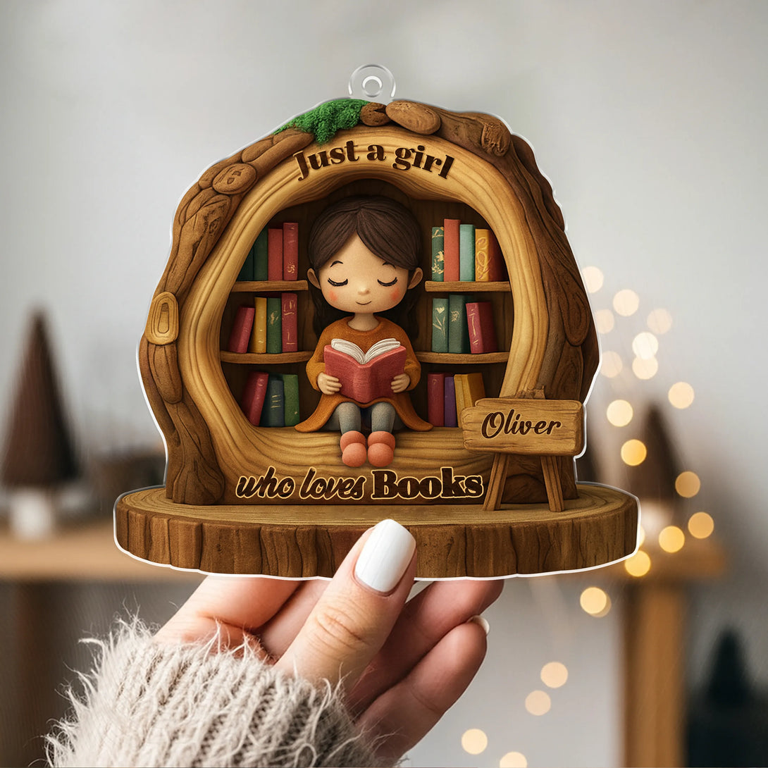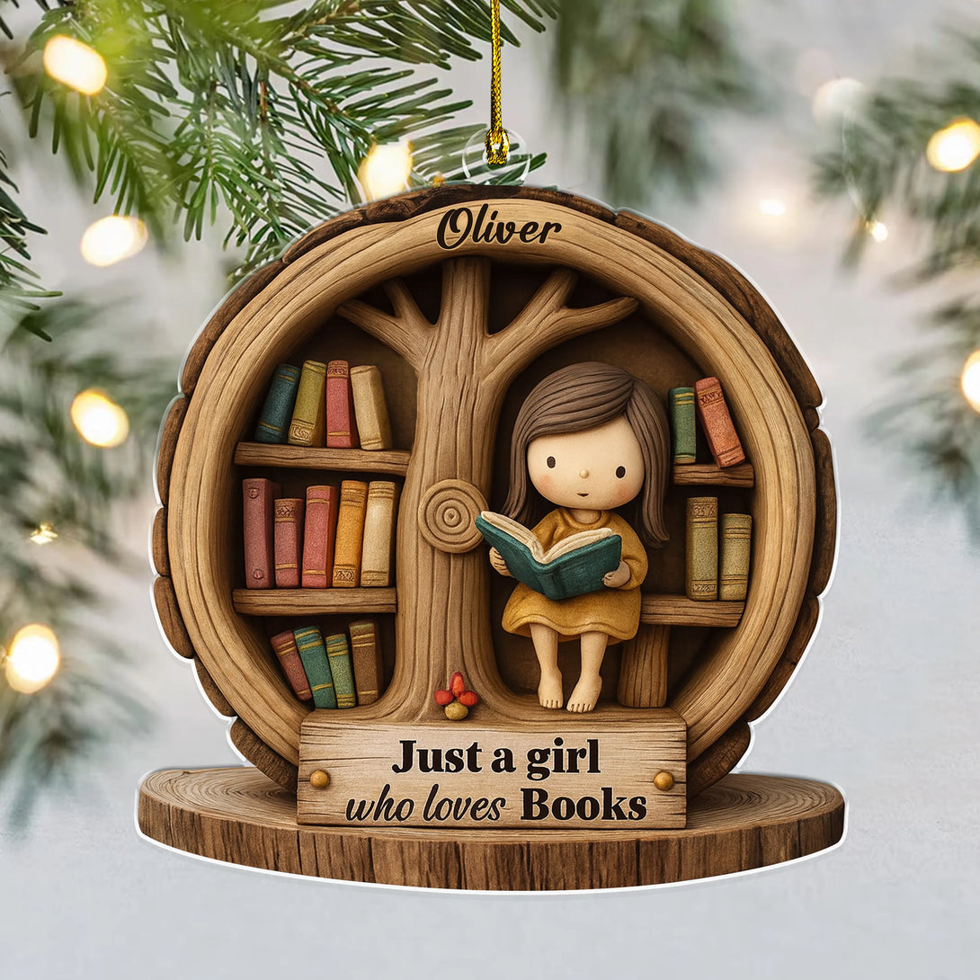 Bring your love for reading to life with this Personalized “Just A Girl Who Loves Books” Acrylic Ornament. Featuring an adorable girl sitting in a tree hollow surrounded by books, this ornament beautifully captures the calm joy of a true book lover.