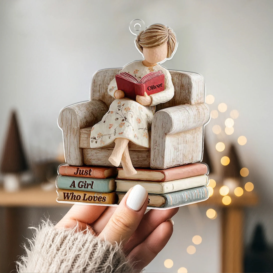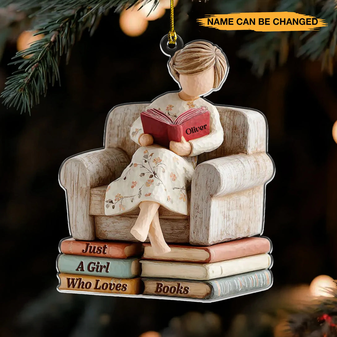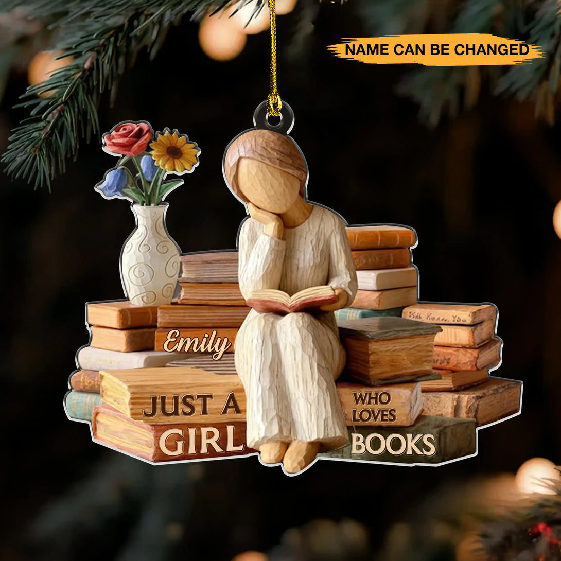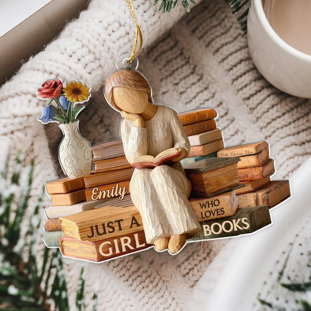 Personalized Just A Girl Who Loves Books 3D Effect Acrylic Ornament