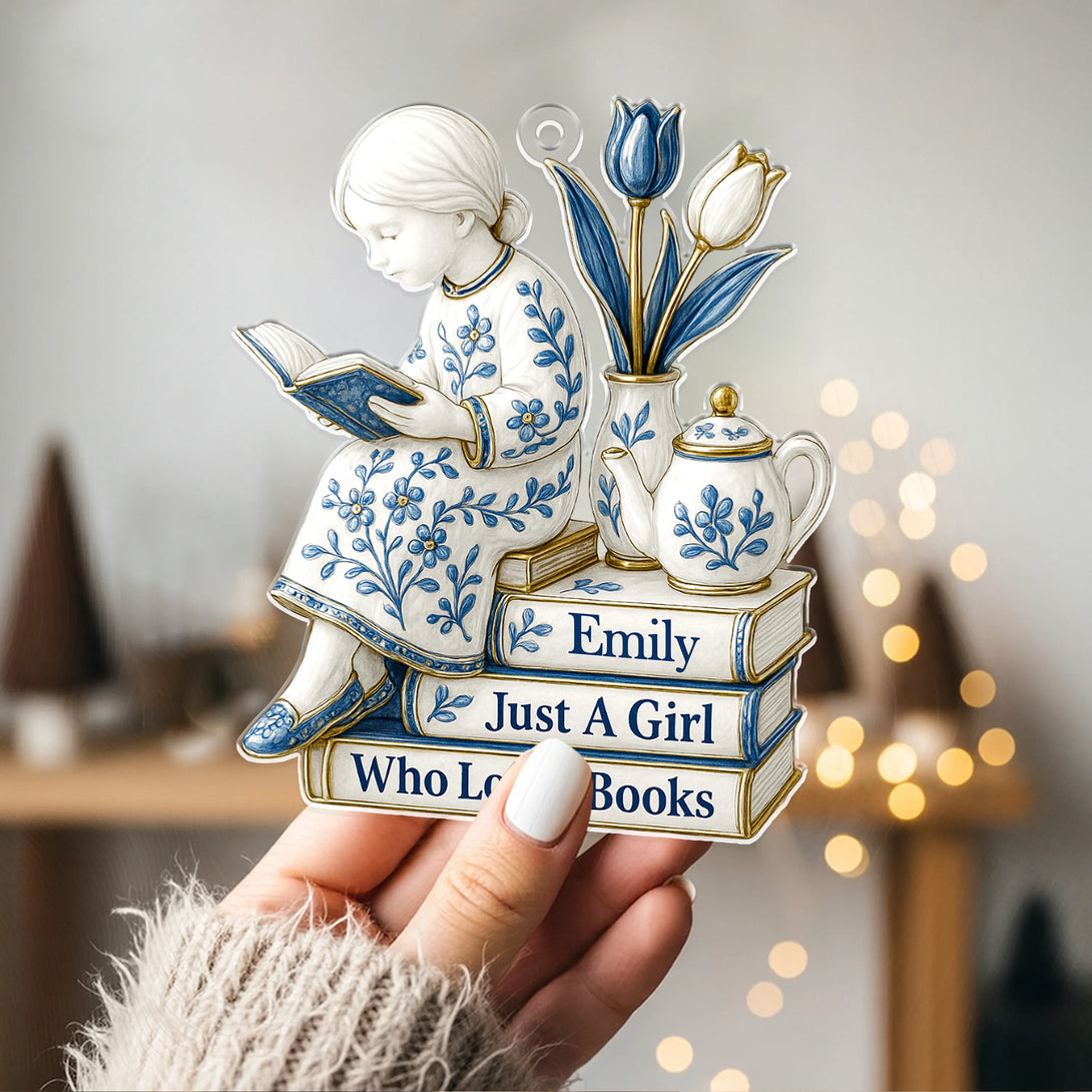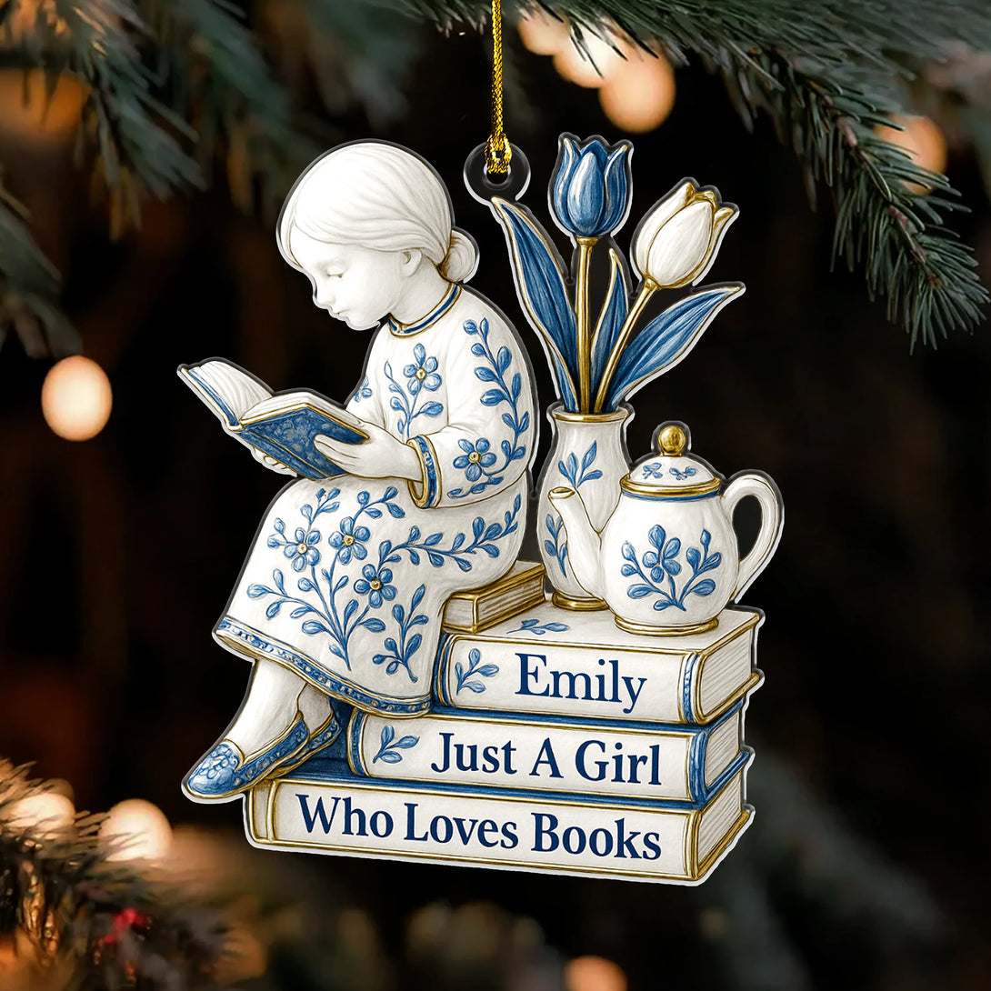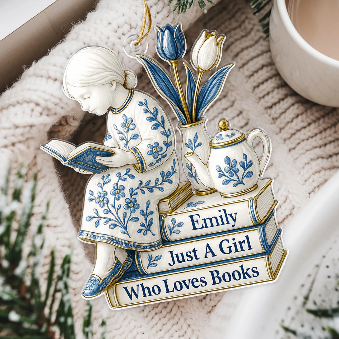 Personalized Just A Girl Who Loves Books Toile De Jouy Acrylic Ornament
