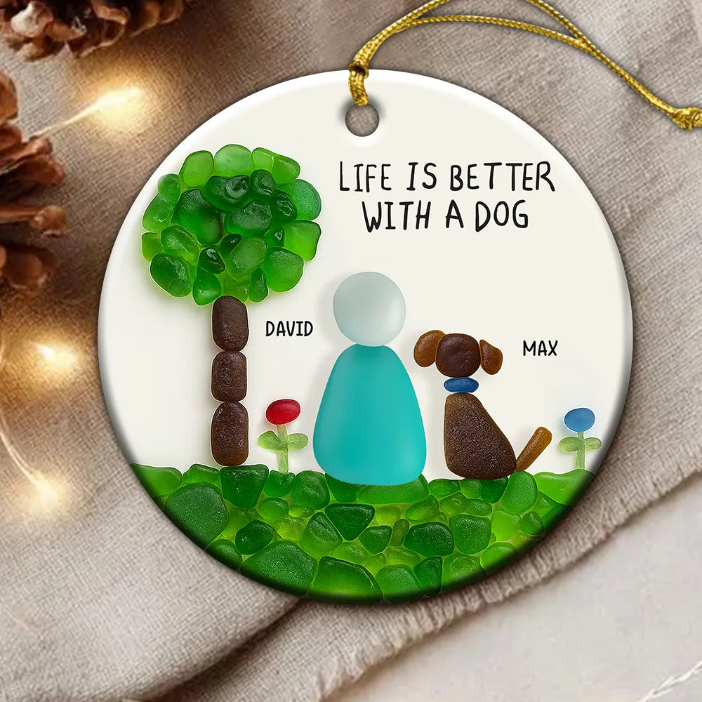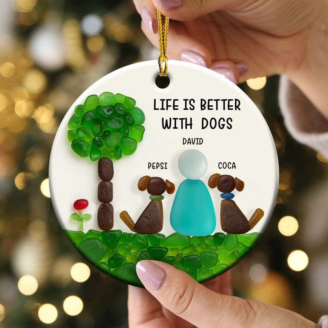 Personalized Life Is Better With A Dog Sea Glass Ceramic Ornament