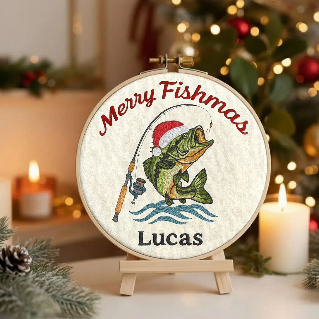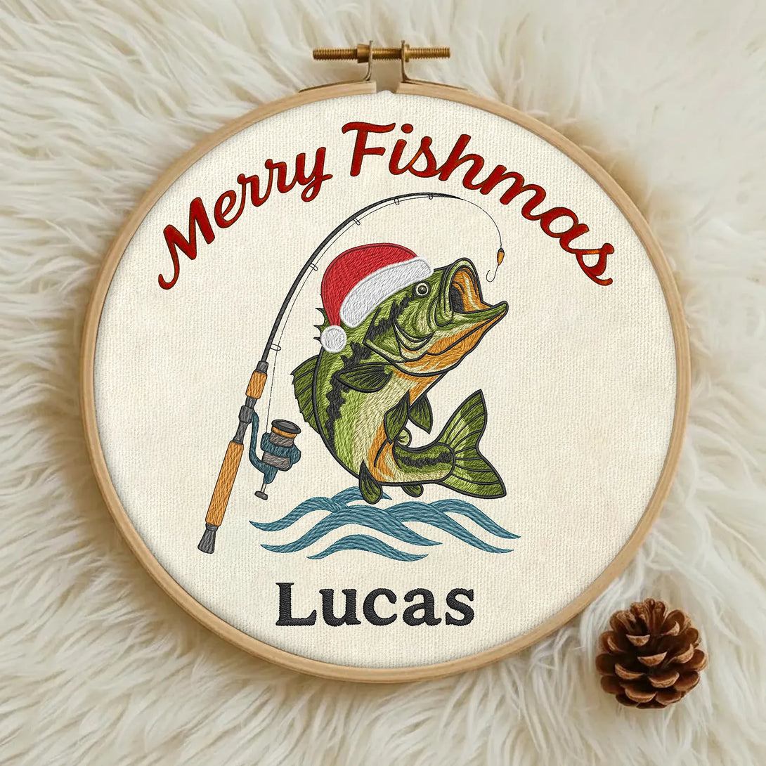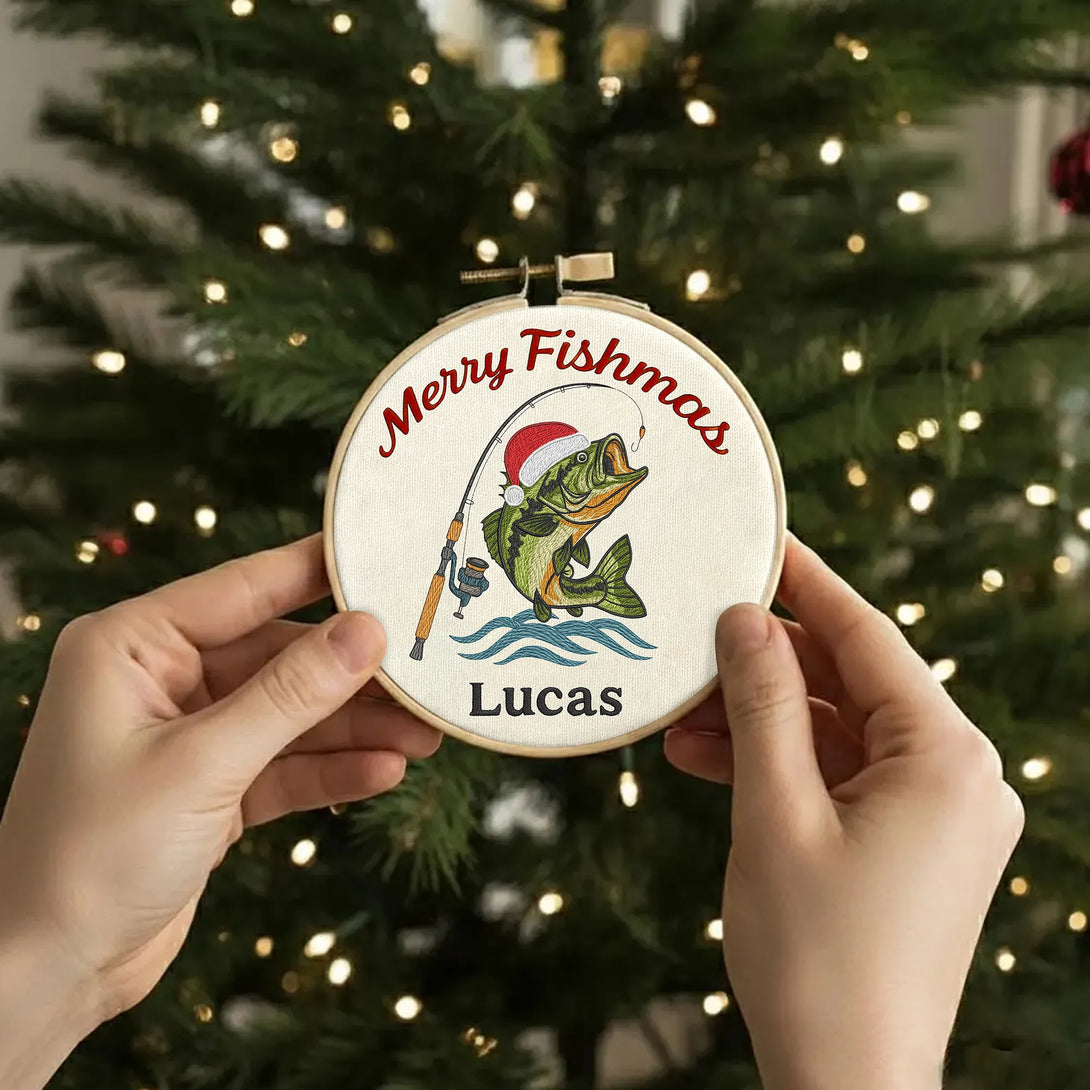Personalized Merry Fishmas Embroidered Ornament, Unique Gift for Fishermen & Fishing Lovers
