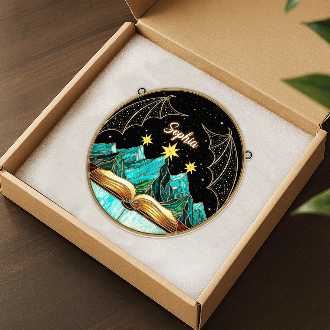 Each piece is custom-made with intricate detailing, making it not only a lovely decor item but also a meaningful gift for someone special. Whether you're a fantasy lover, bookworm, or celestial dreamer, this suncatcher captures the light and imagination of every soul who adores a little sparkle.