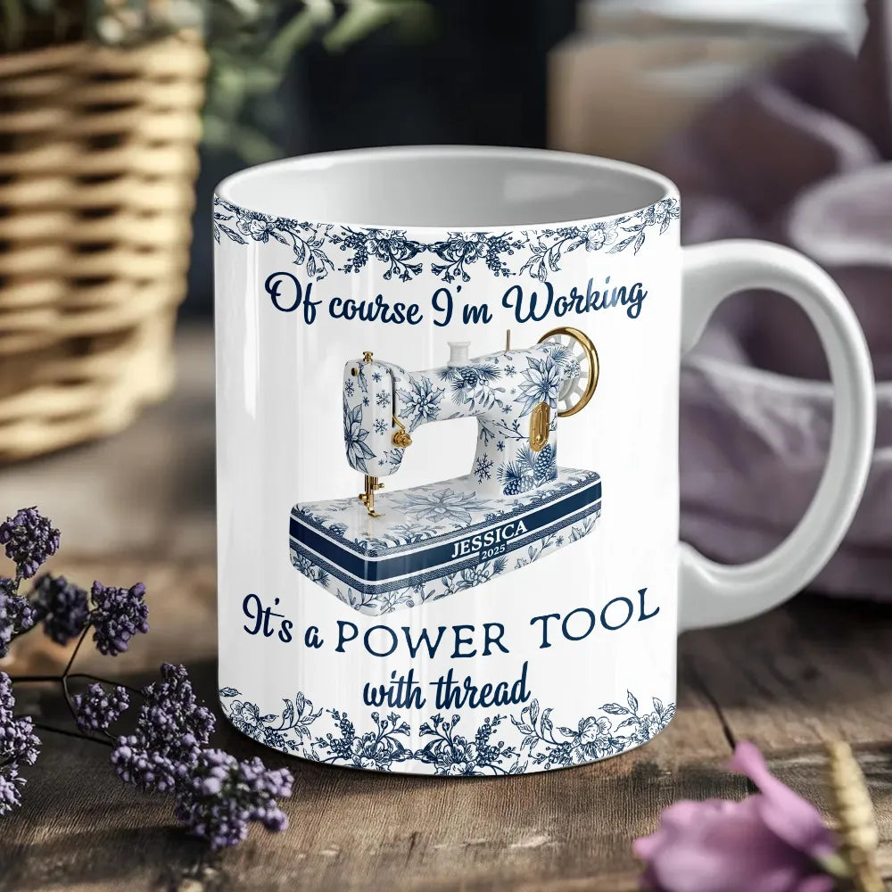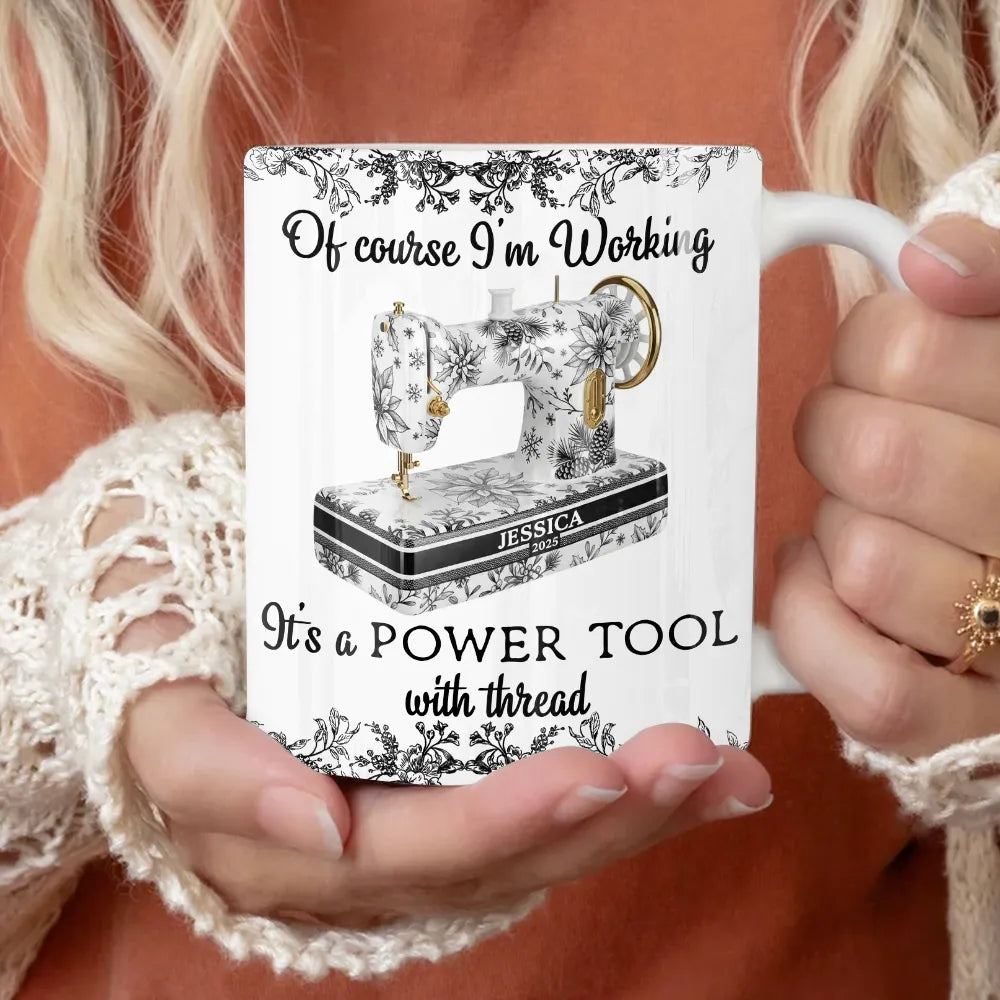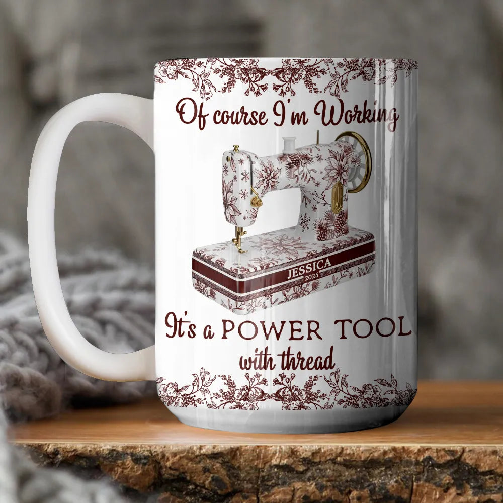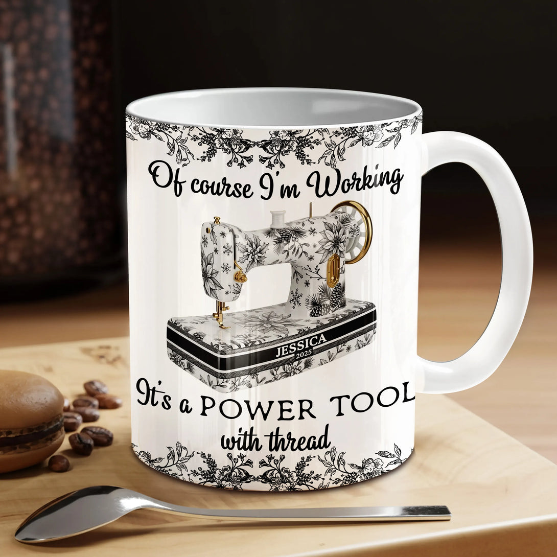 Personalized Of Course I'm Working It's a Power Tool with Thread Sewing Ceramic Mug