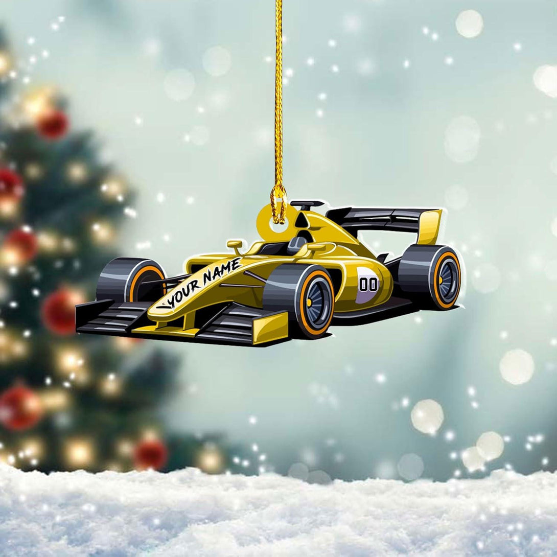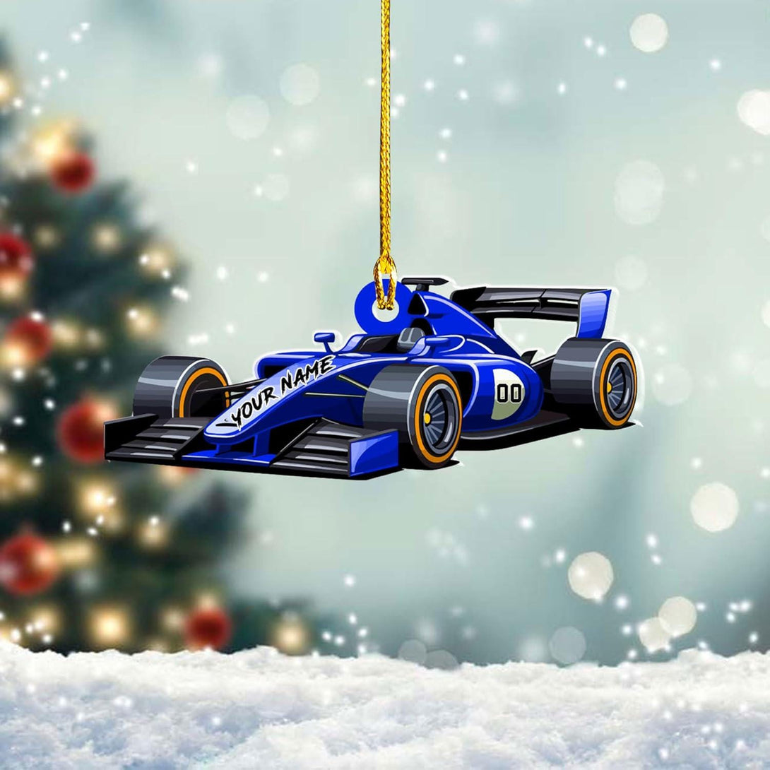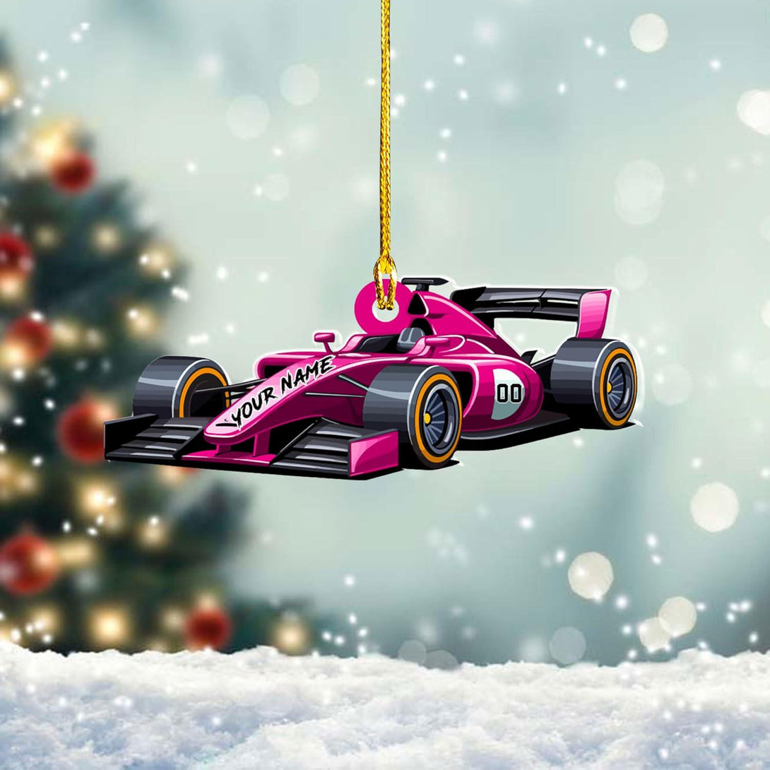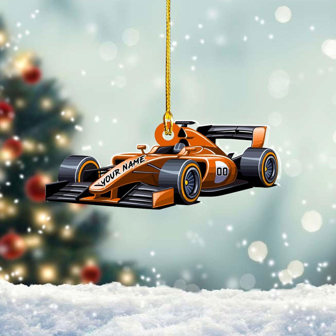 Personalized Race Car Ornament, Custom Christmas Tree Hanging Decor, Holiday Gift For Race Car Lovers
