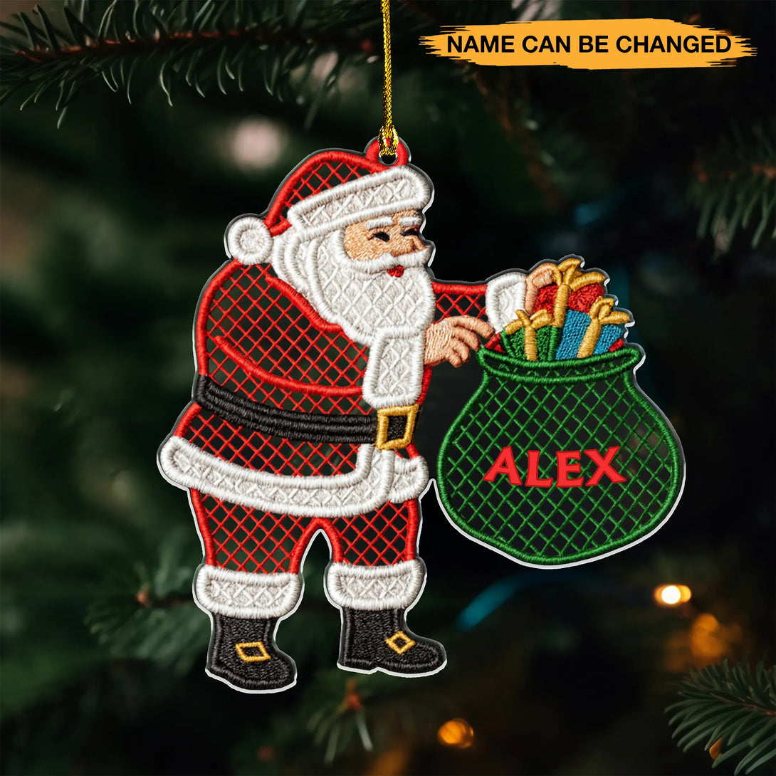 Personalized Santa Clause Embroidery Effect Acrylic Ornament