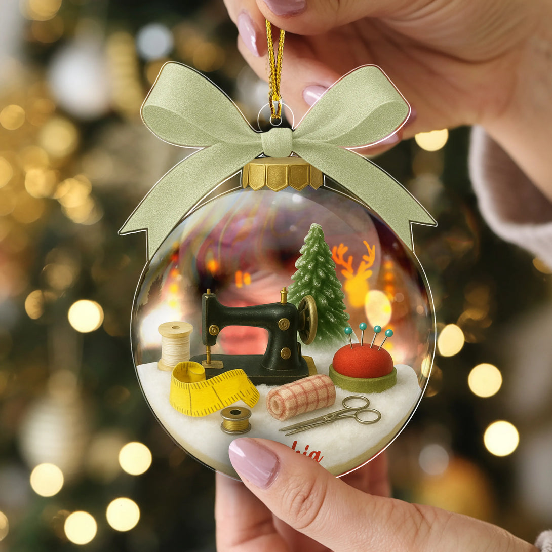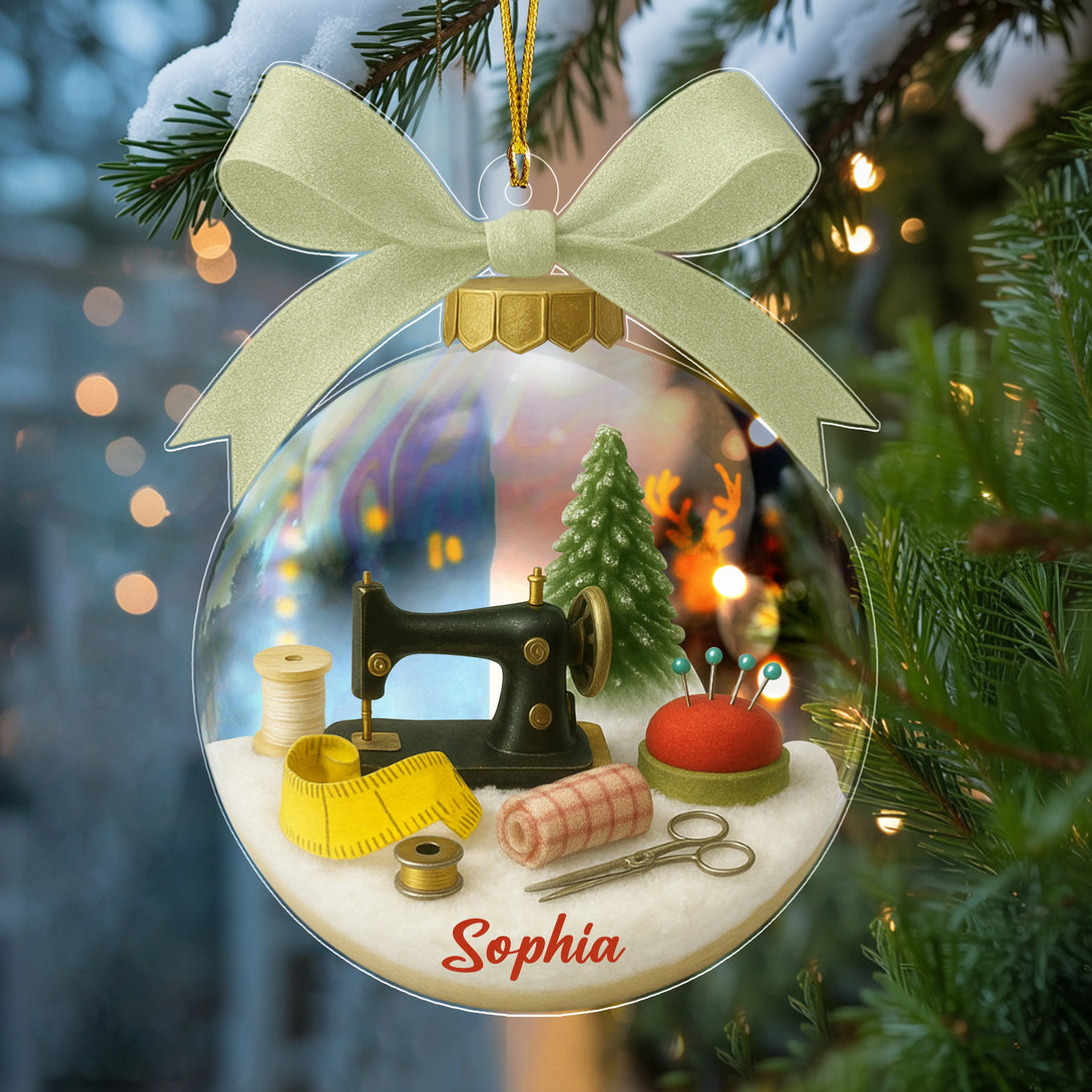 Personalized Sewing Corner Snow Globe Acrylic Ornament