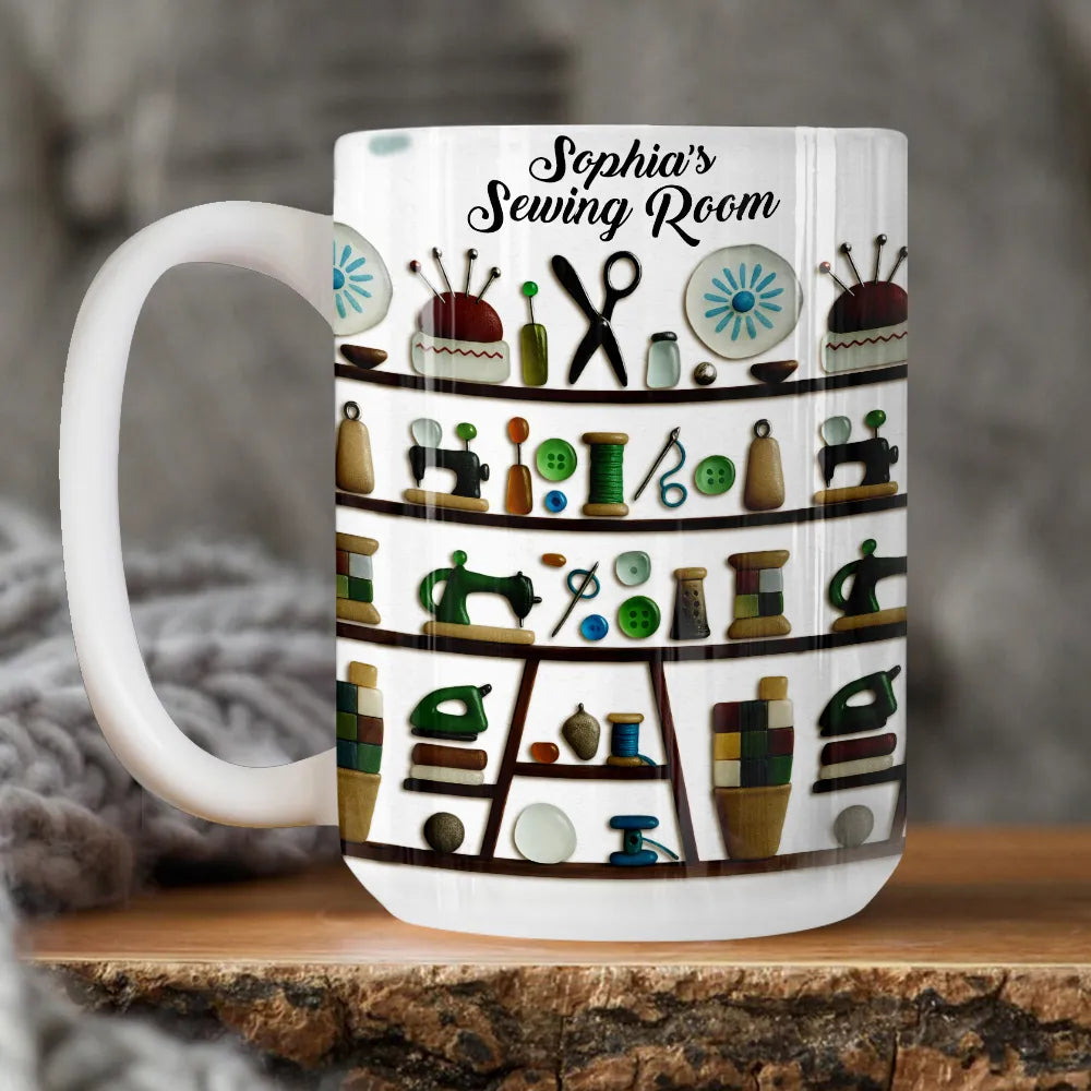 Personalized Sewing Room Sea Glass Ceramic Mug