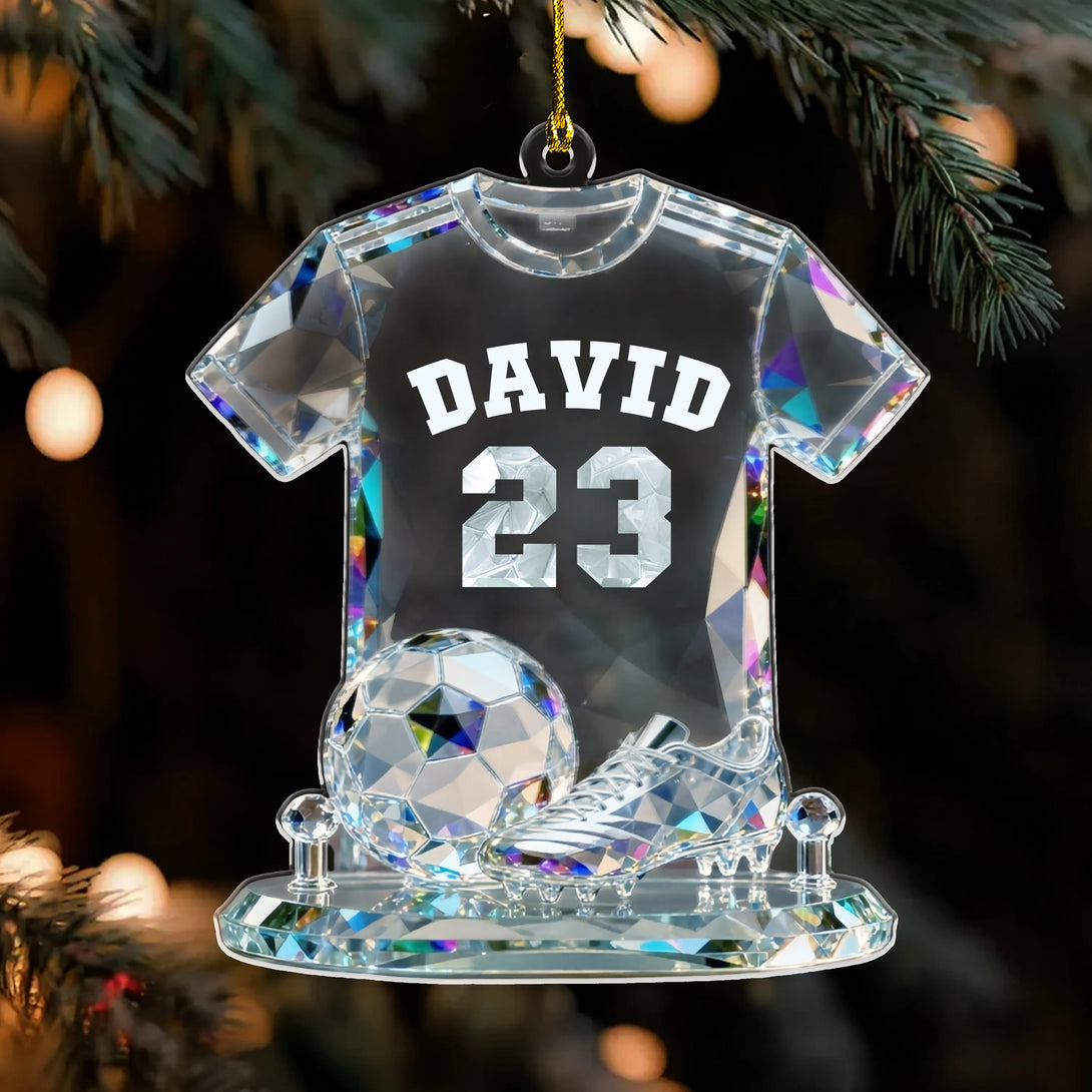 Featuring a jersey-shaped acrylic design with a stunning 3D light-reflective effect, this ornament captures the beauty of both craftsmanship and team spirit. Customize it with any name, number, or team color to create a one-of-a-kind gift that sparkles on your Christmas tree or window.