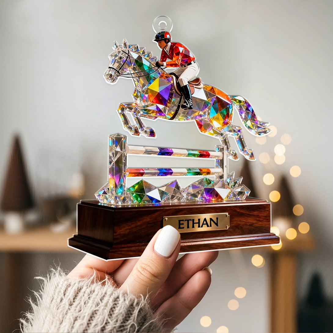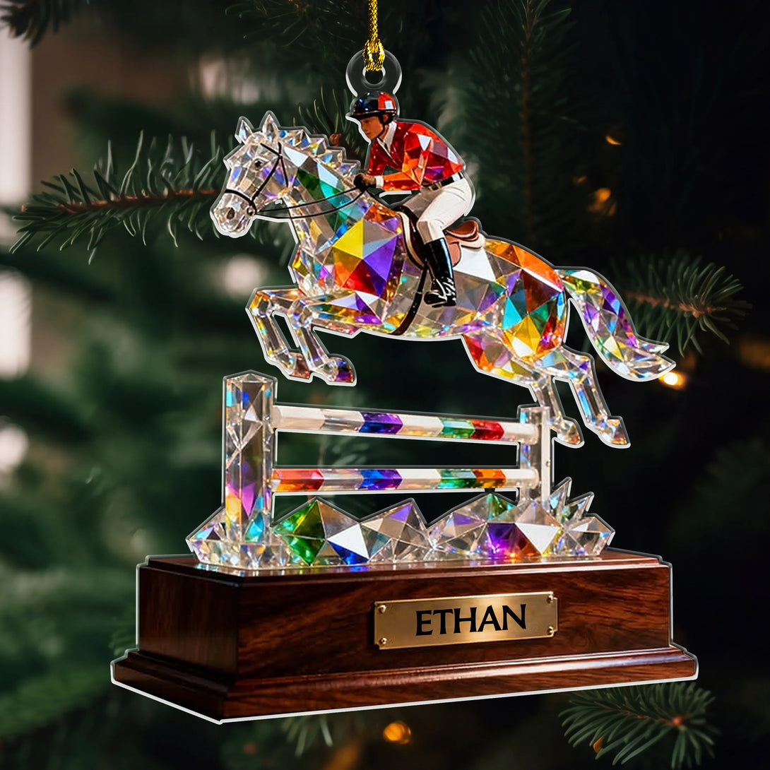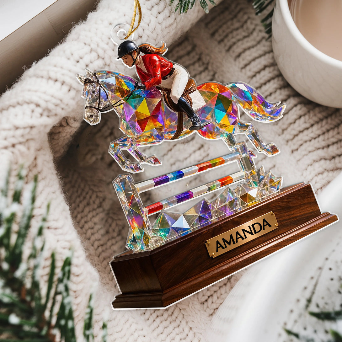 Customize it with your name or favorite rider’s name to create a one-of-a-kind keepsake. Perfect for equestrians, horse lovers, and racing fans, this ornament is a meaningful gift for holidays, birthdays, or to honor a passion for horseback riding.