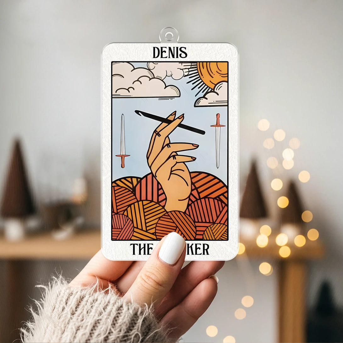 Celebrate your love for sewing in a fun and magical way with the Personalized The Hooker Crochet Tarot Card Acrylic Ornament. Featuring a whimsical tarot-inspired design, this ornament is a unique keepsake that adds personality to your holiday tree.