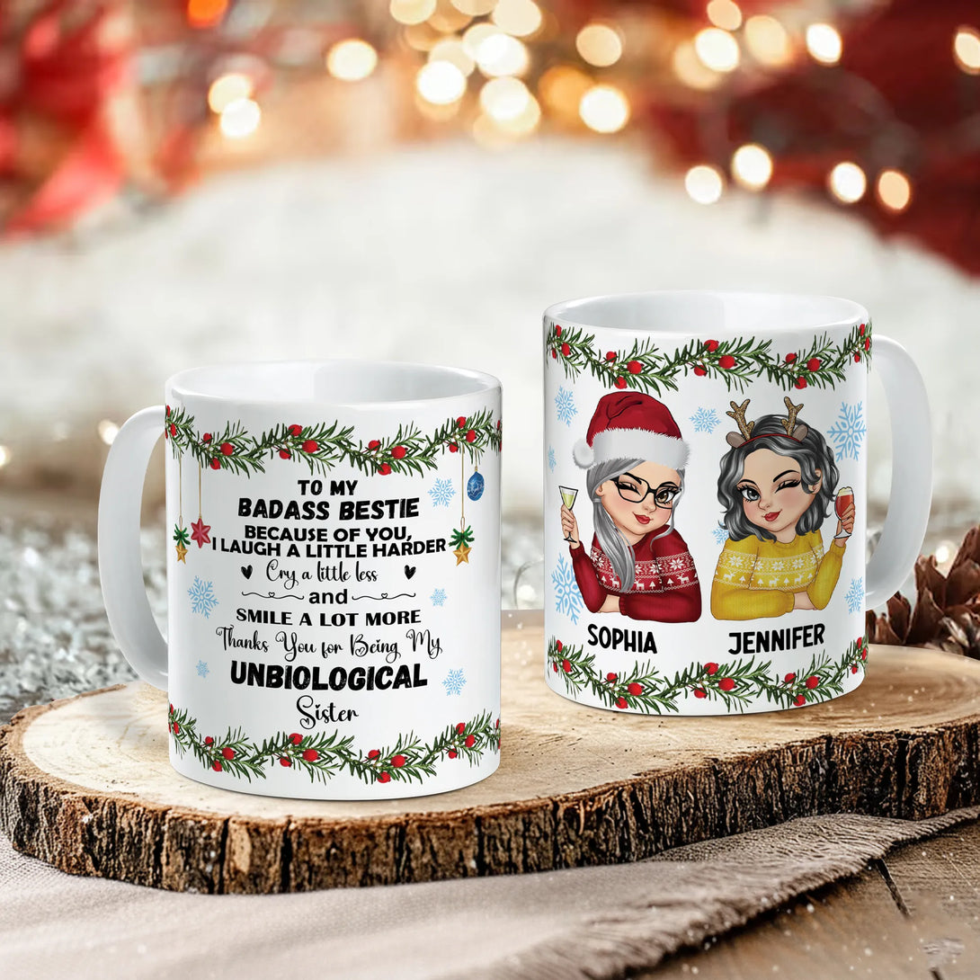 Celebrate your unbreakable bond with this Personalized “To My Badass Bestie” Mug. Perfect for best friends who are more like sisters, this mug can be fully customized with names, hairstyles, outfits, and even fun holiday themes.