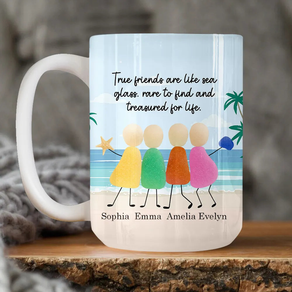 Celebrate the beauty of friendship with this Personalized Sea Glass Friends Mug, a heartwarming gift that symbolizes how rare and precious true friends are. Featuring a unique sea glass art design, this mug beautifully illustrates the quote: “True friends are like sea glass: rare to find and treasured for life.”