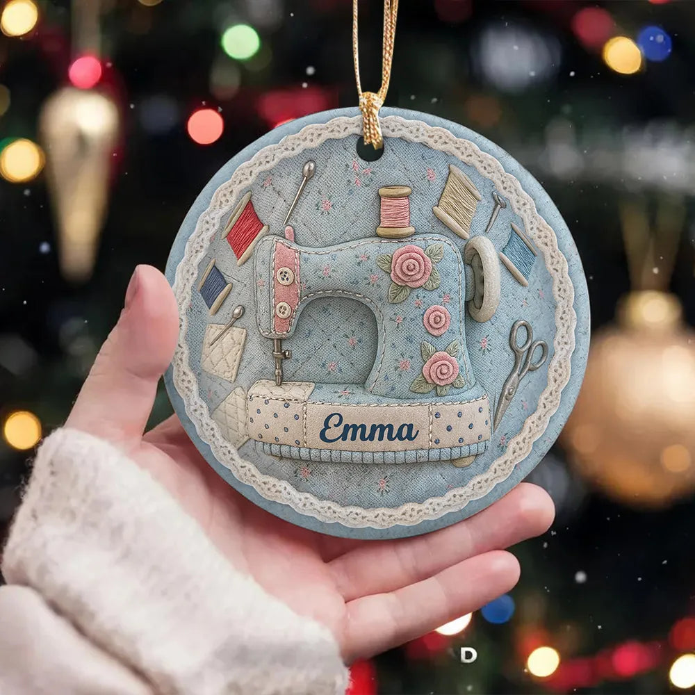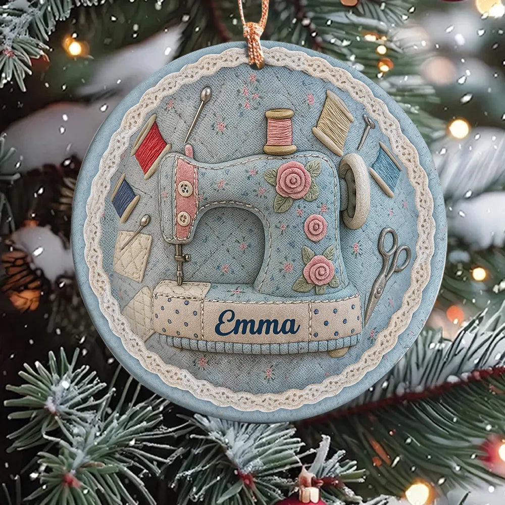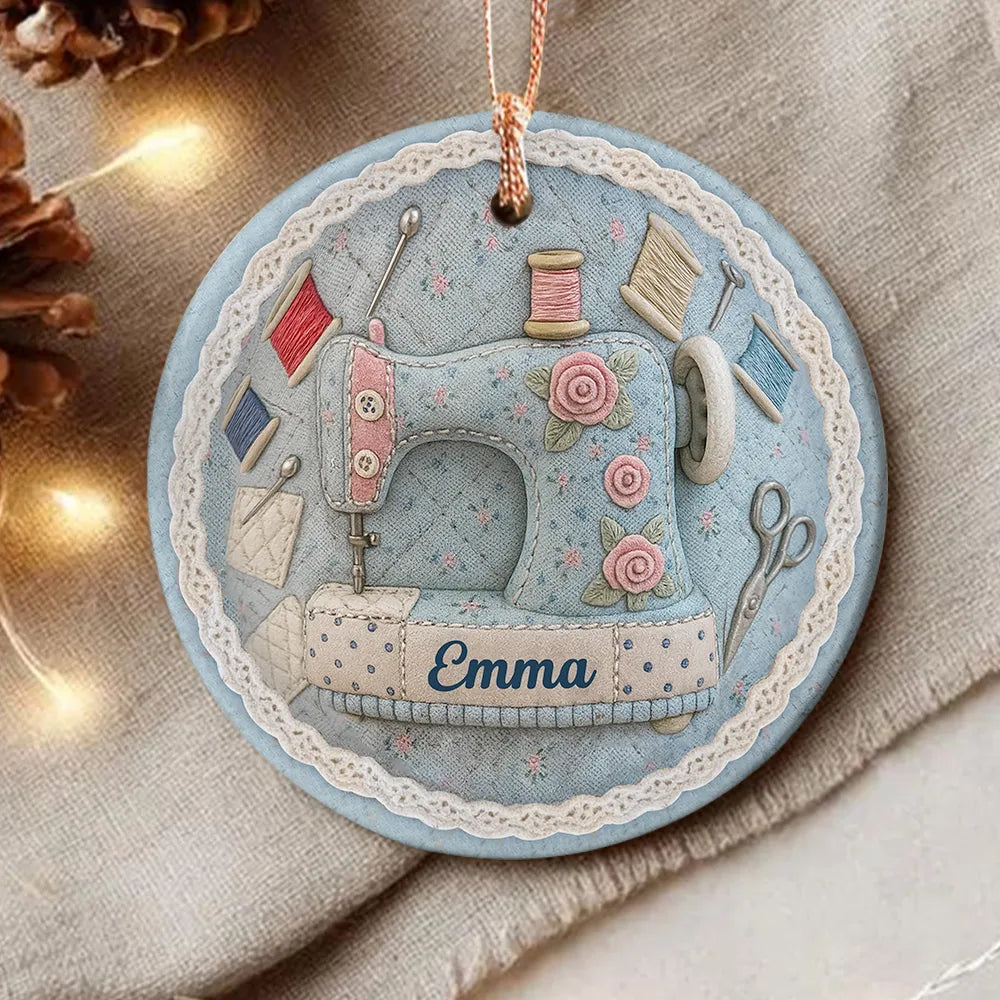 Personalized Vintage Sewing Machine 3D Effect Circle Ceramic Ornament