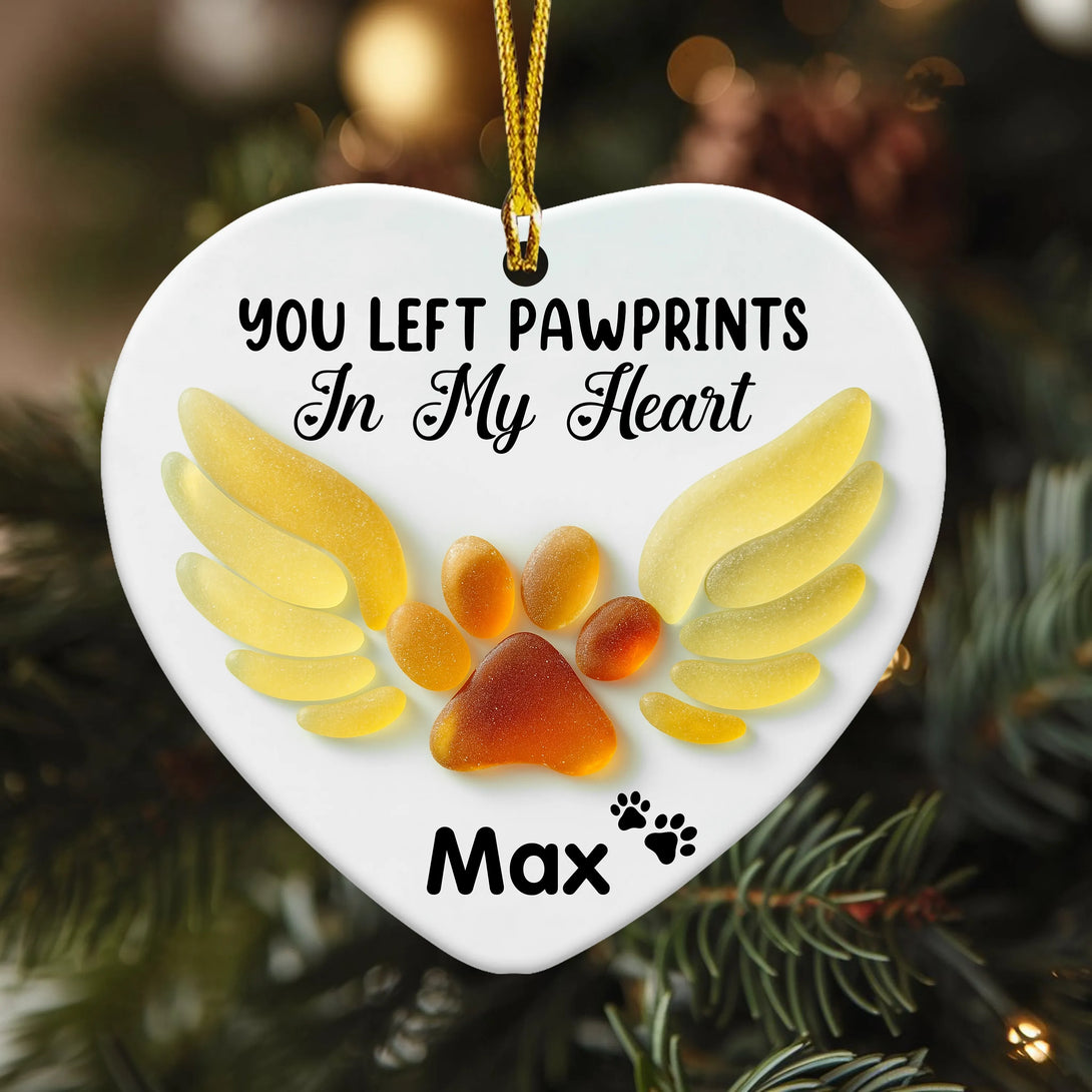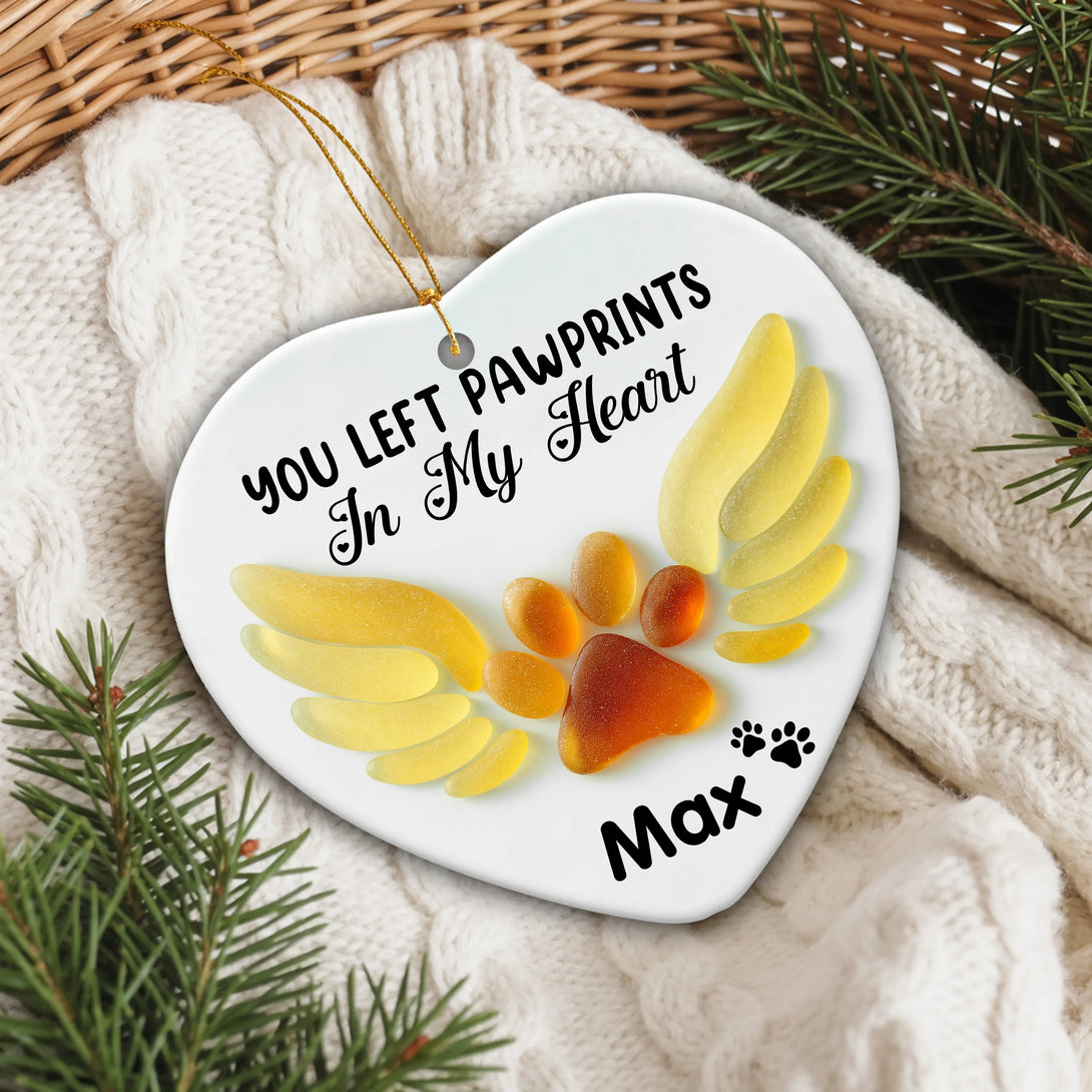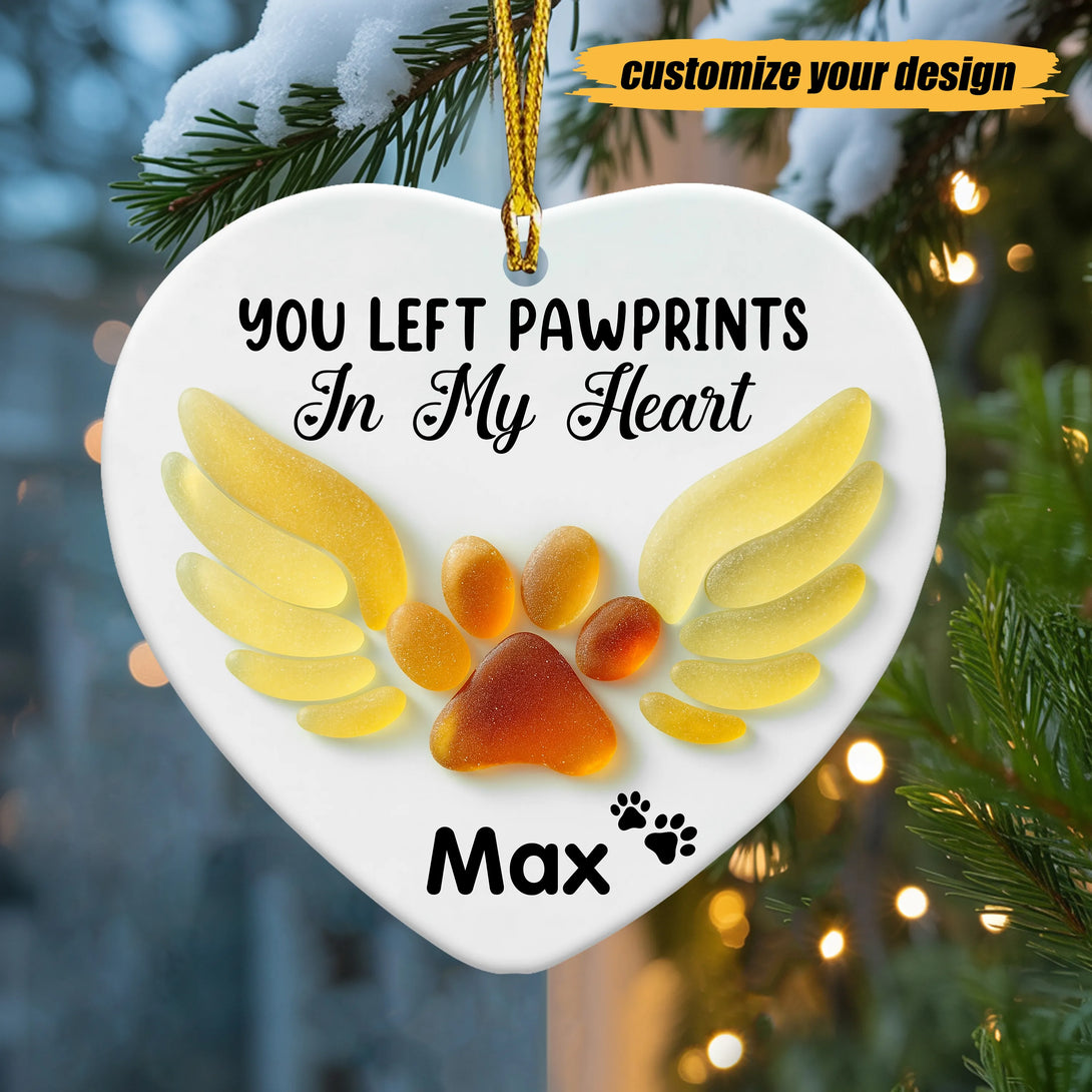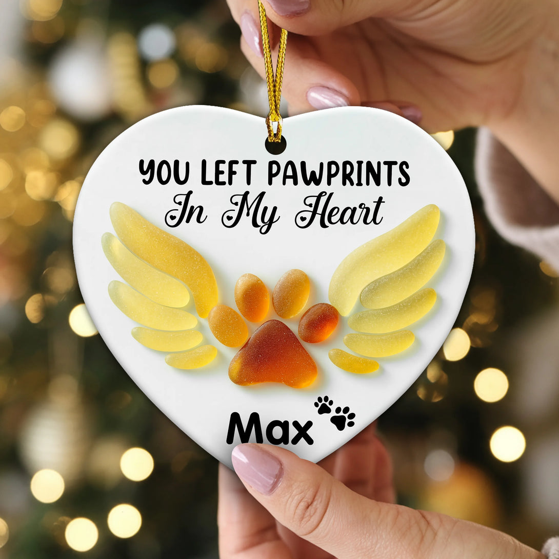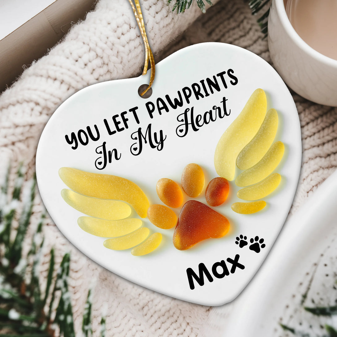 Personalized You Left Pawprint In My Heart Ceramic Ornament