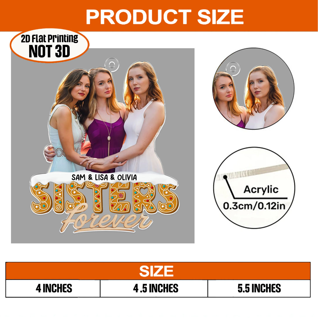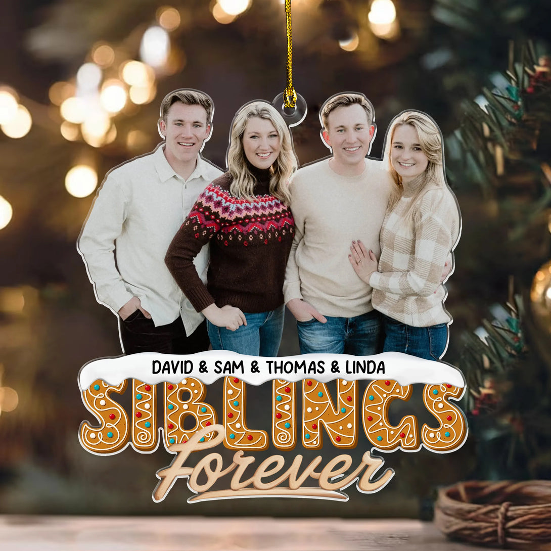Photo Upload Friend, Sibling Forever Gingerbread 3D Effect Acrylic Ornament