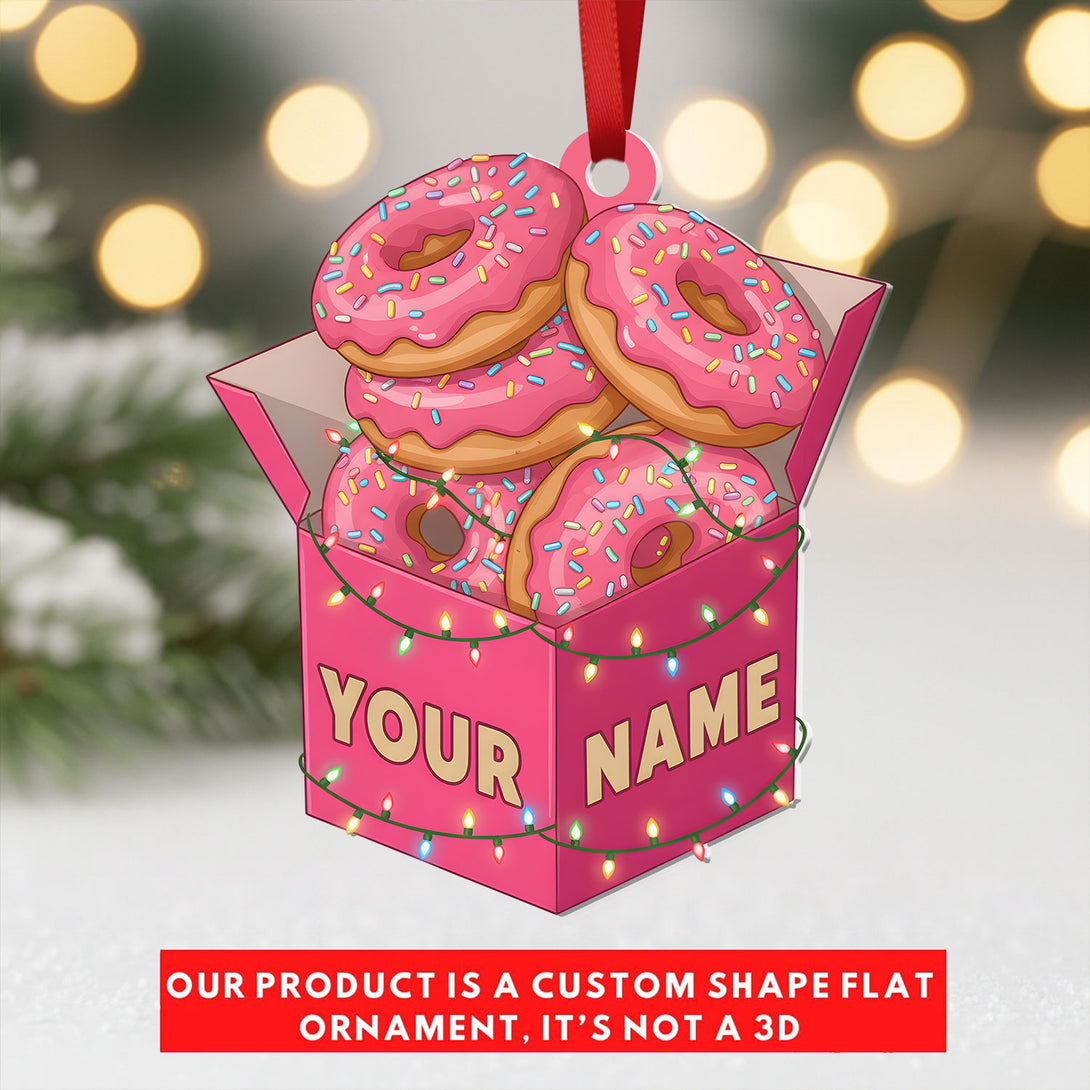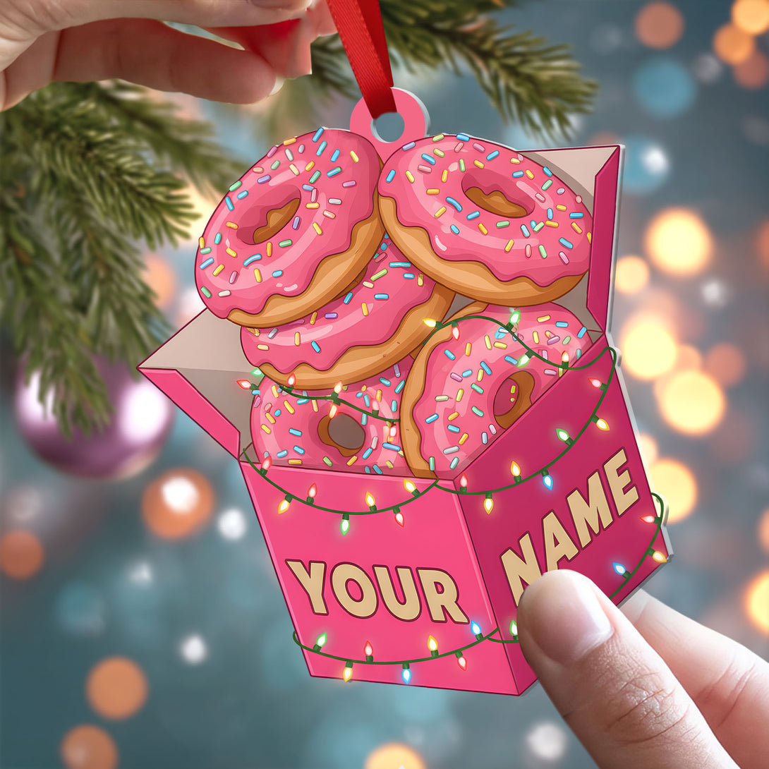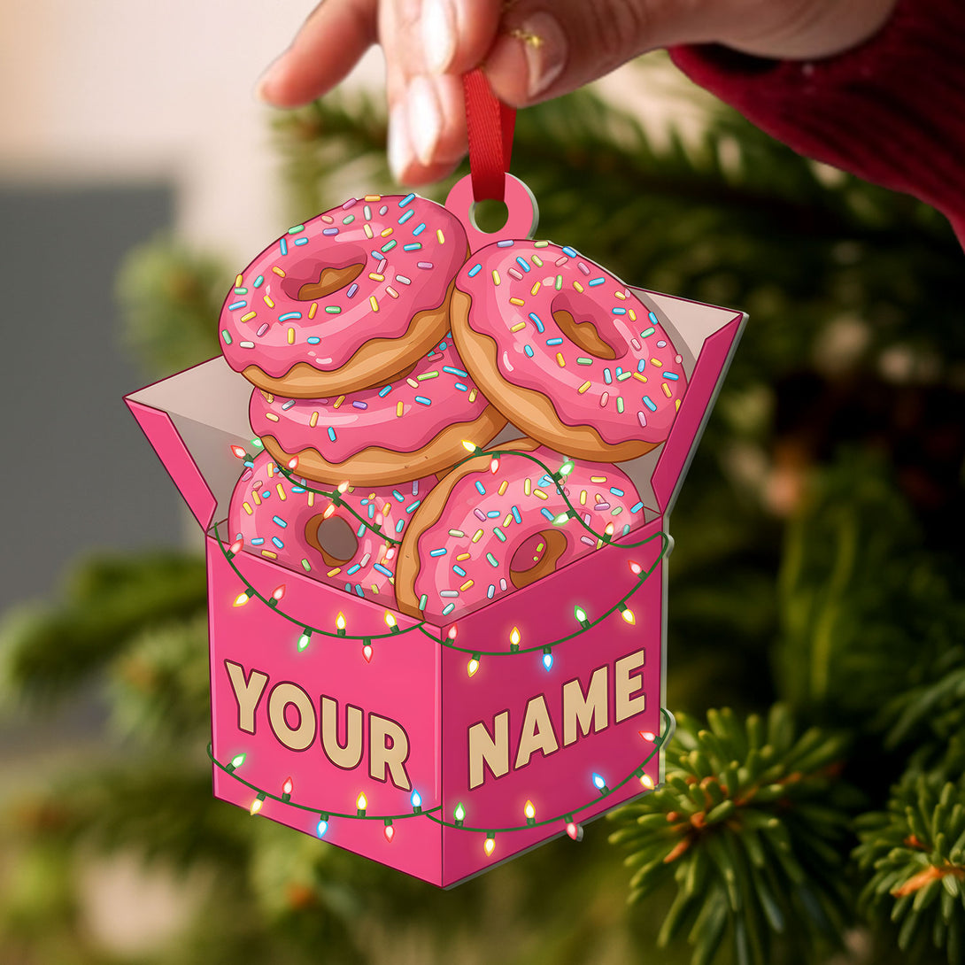Pink Donut Box Ornament 2025 - Personalized Acrylic Christmas Decoration With Name, Fun Food Keepsake Gift For Dessert Fans