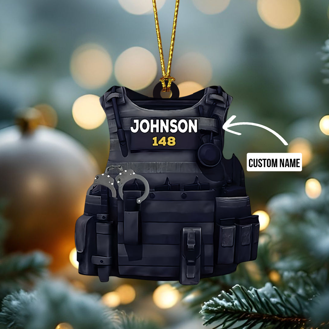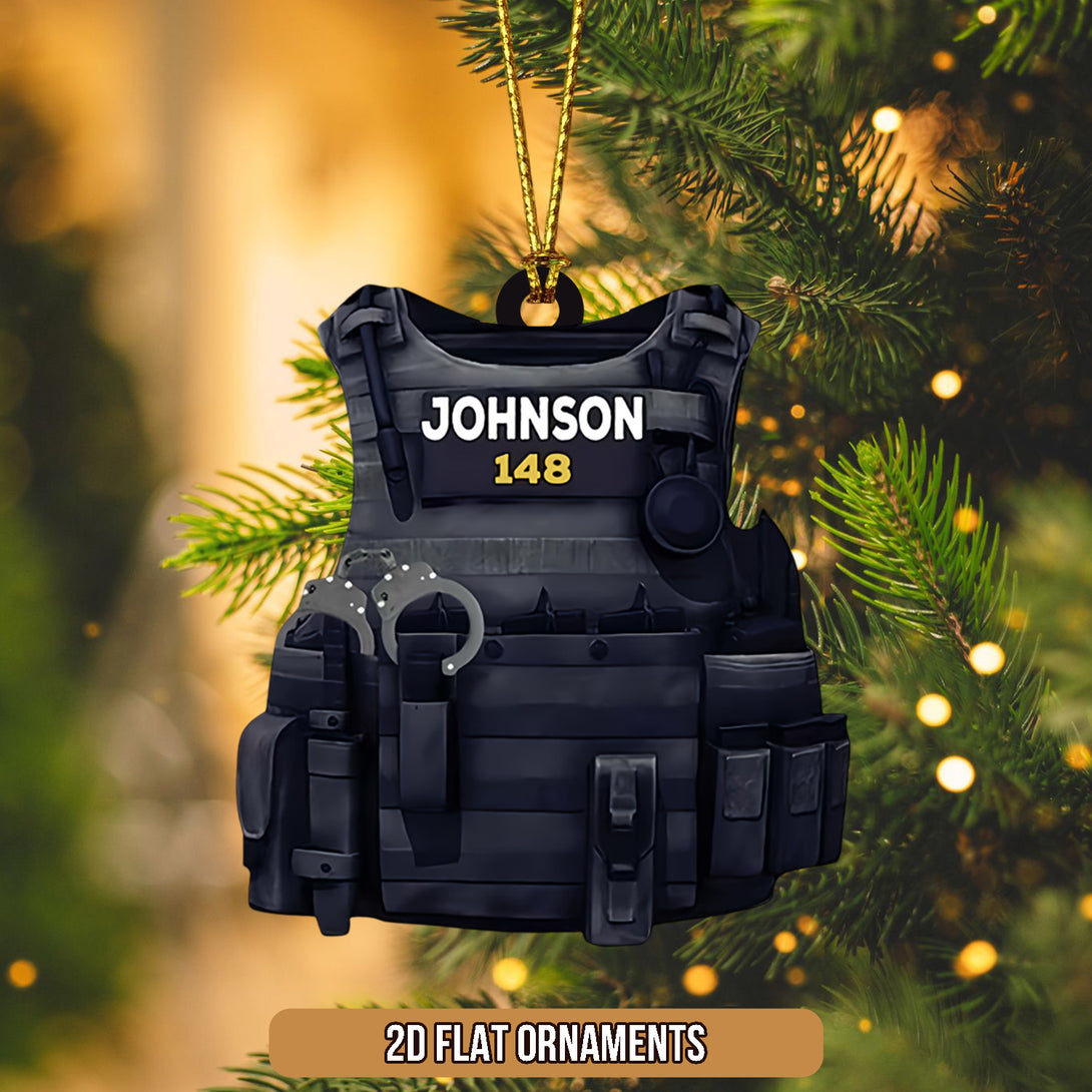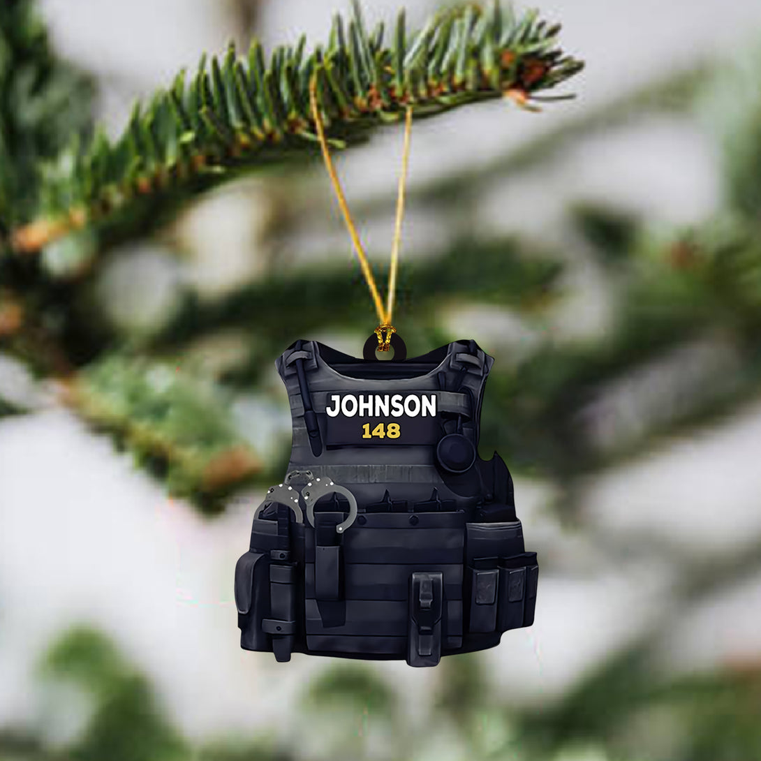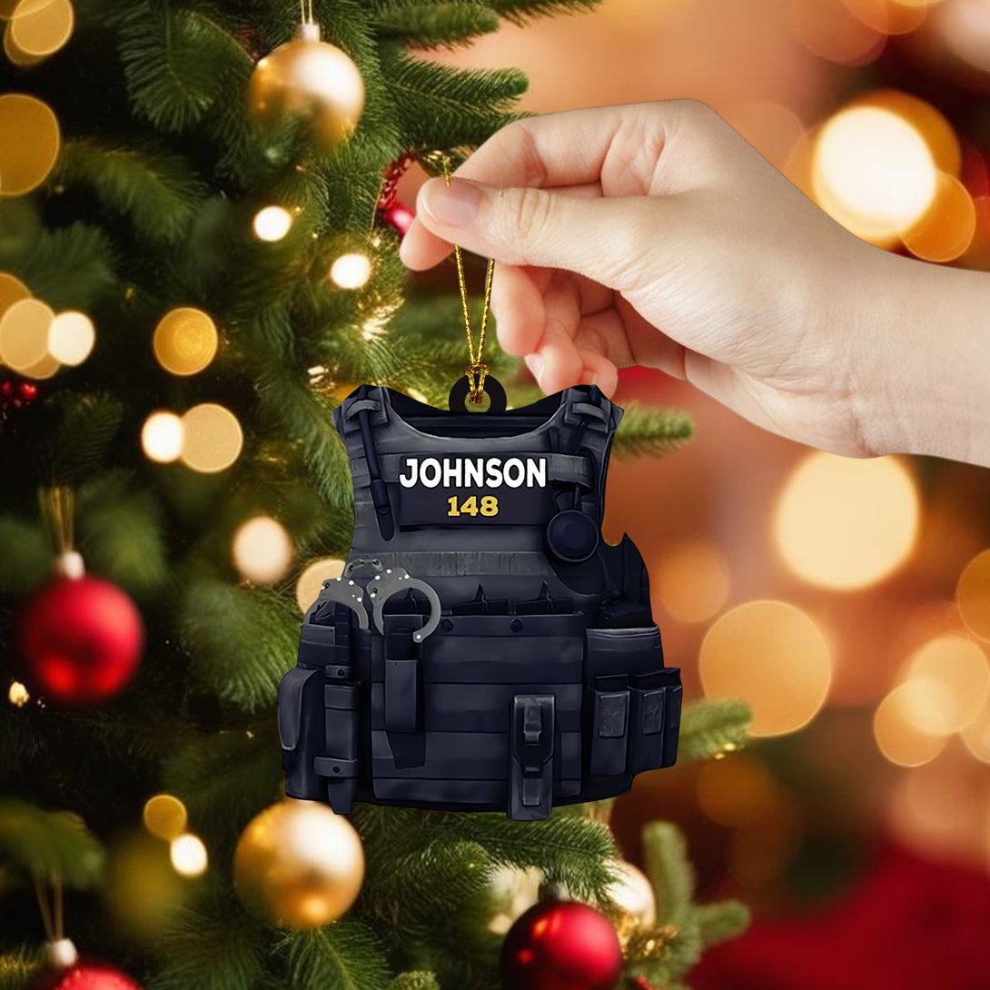 Police Vest Christmas Ornament 2025, Personalized Officer Keepsake With Name & Number, Holiday Tree Acrylic Decoration Gift For Law Enforcement
