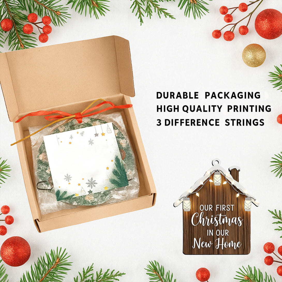 Rustic New Home Ornament 2025, Personalized Wooden Key Decoration With Lights, First Christmas Housewarming Gift For Couples
