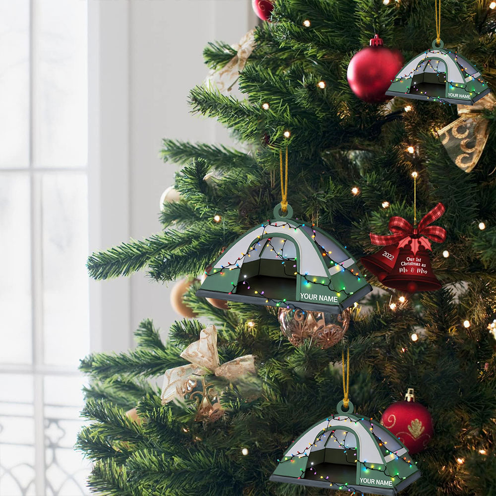 Tent Camping Christmas Ornaments - Personalized Camping Decor For Tree, Holiday Gingerbread