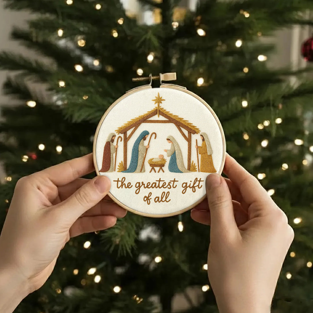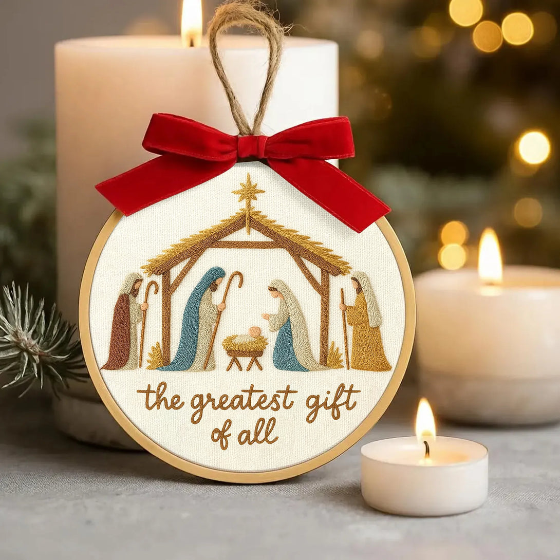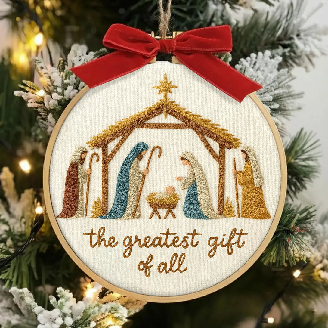 The Greatest Gift Of All Embroidered Ornament – Christian Nativity Christmas Gift