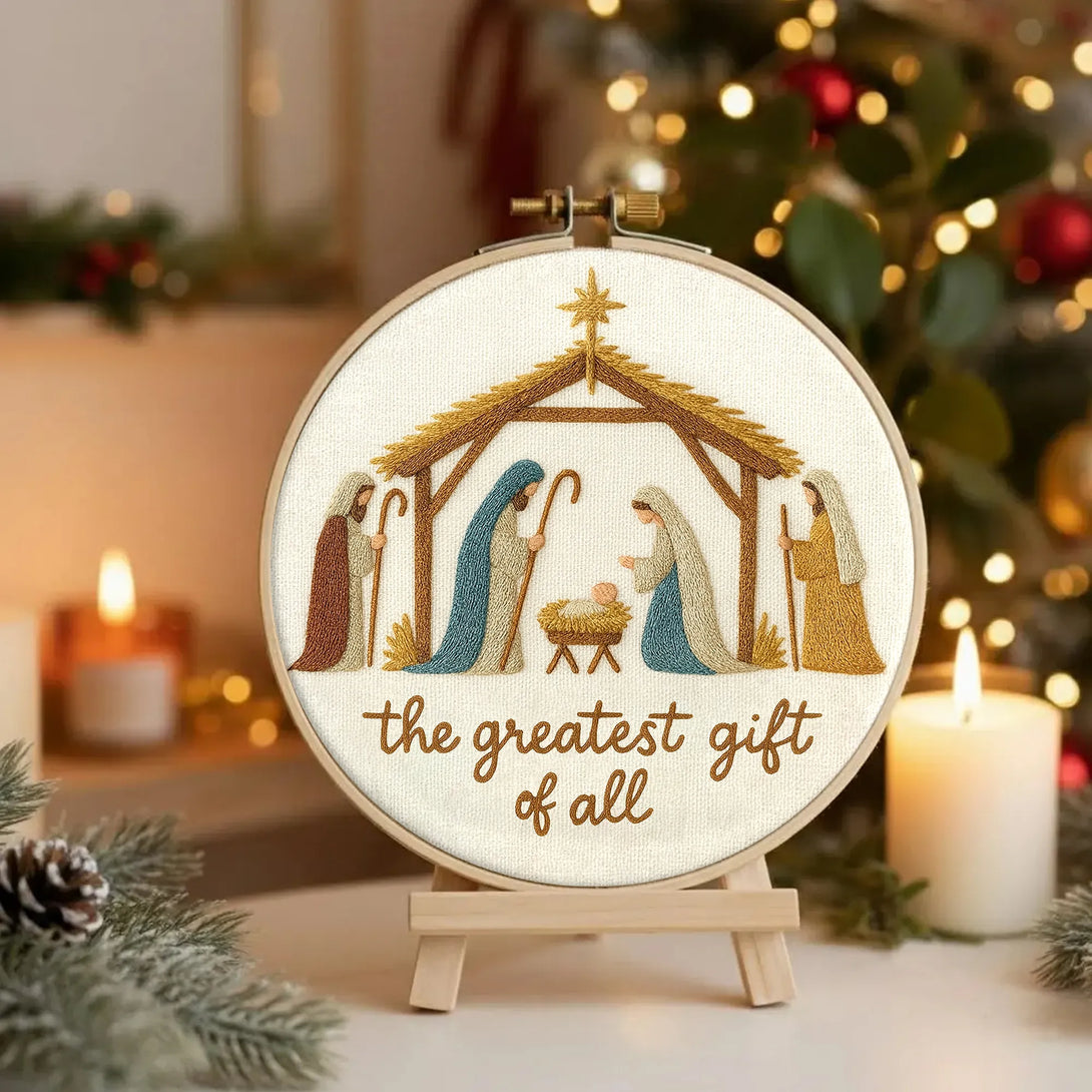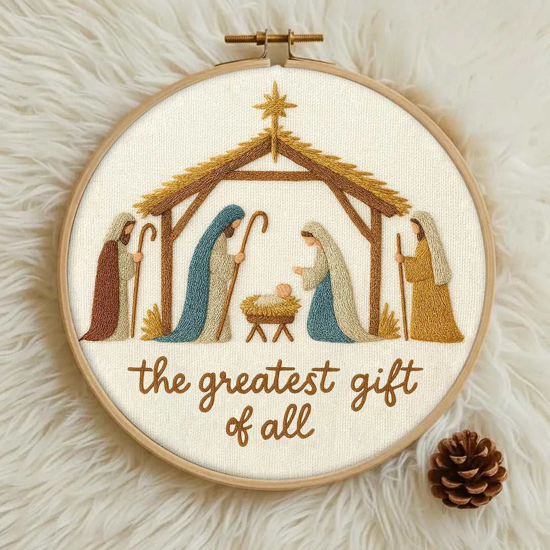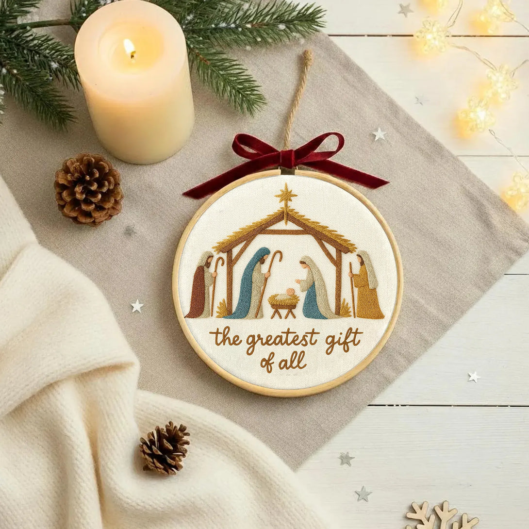 The Greatest Gift Of All Embroidered Ornament – Christian Nativity Christmas Gift