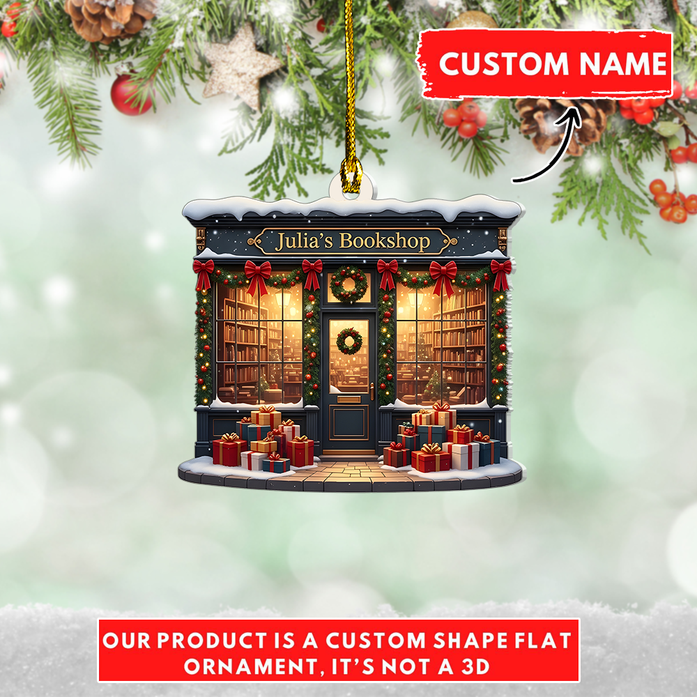 Unique Bookshop Christmas Ornament 2025, Personalized Bookstore Design, Custom Holiday Keepsake For Book Lovers & Teachers