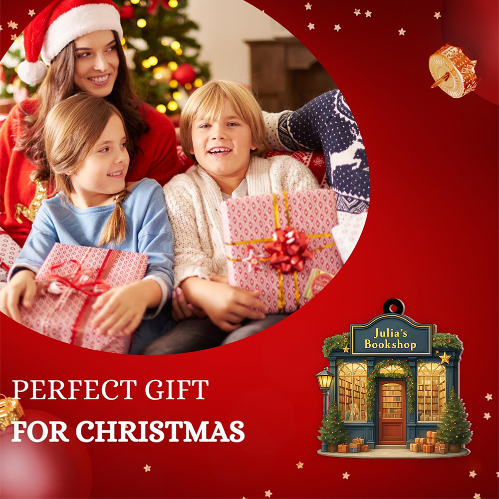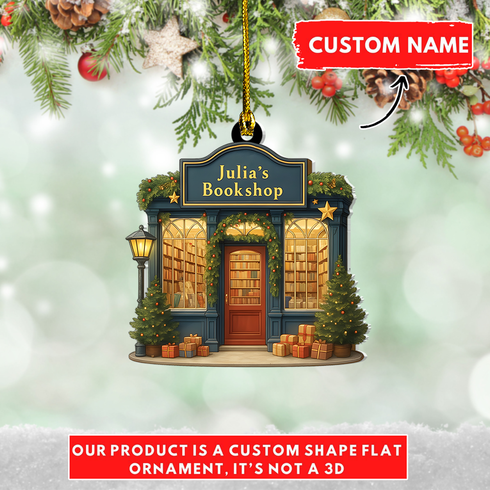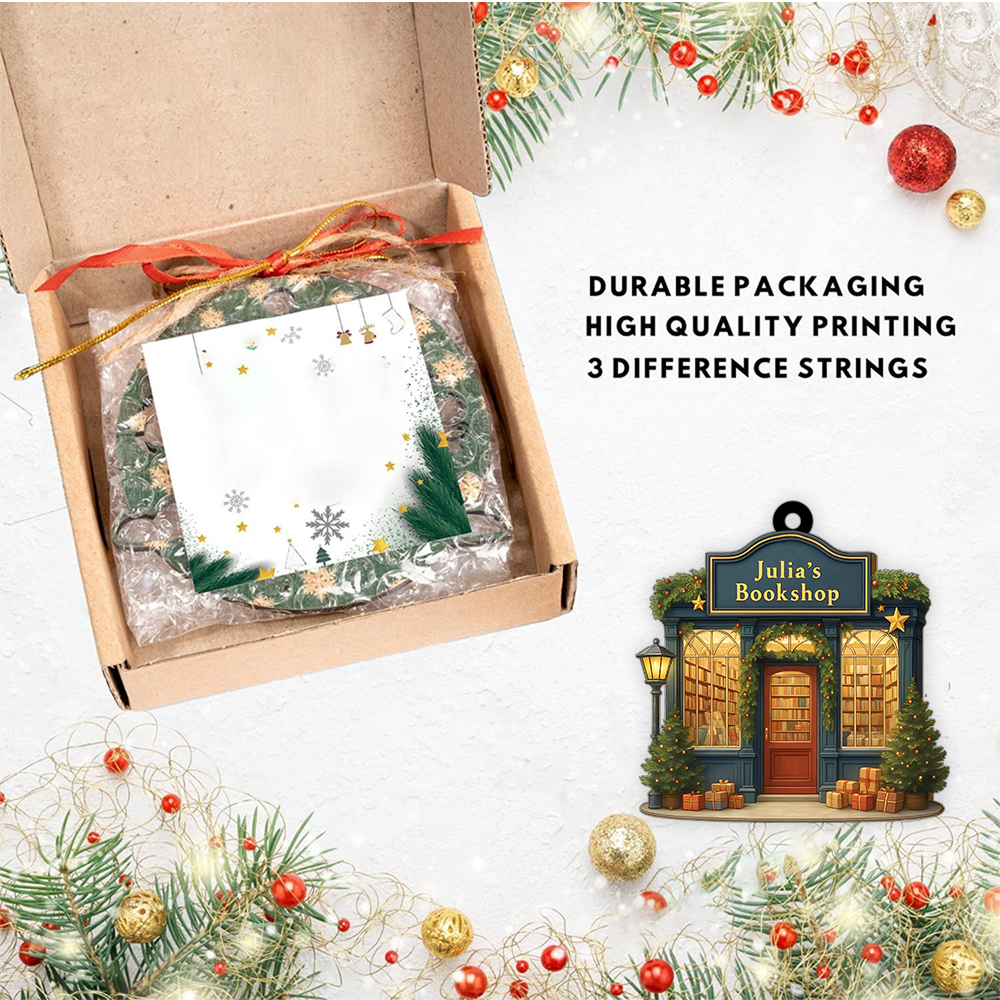 Unique Bookstore Ornament - Personalized Christmas Tree Decoration For Book Lovers, Librarians, Readers & Book Clubs, Custom Bookworm Gift