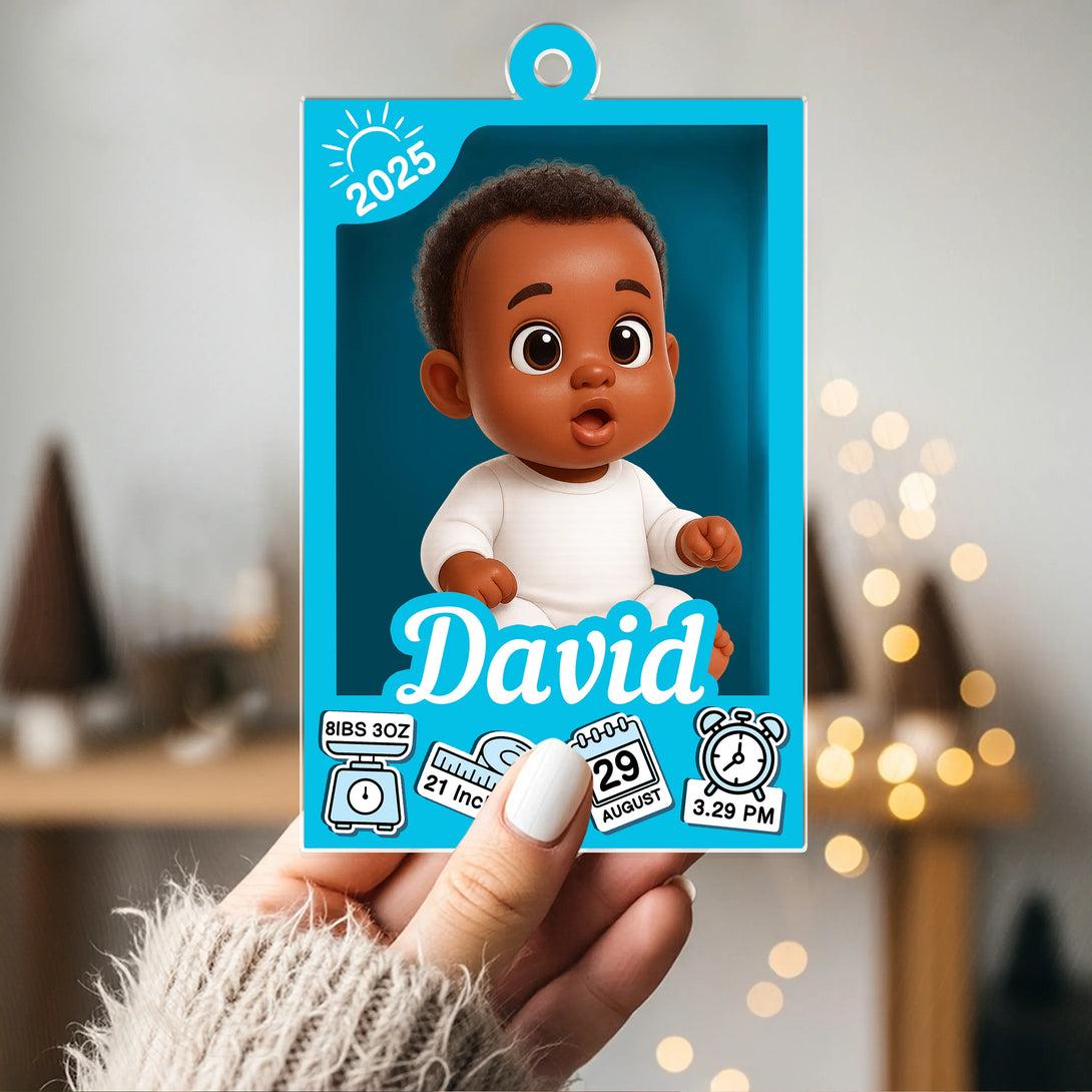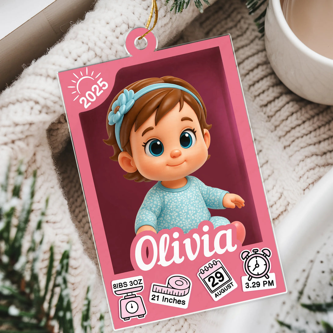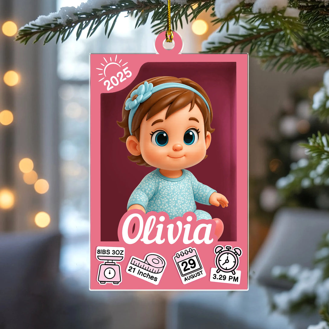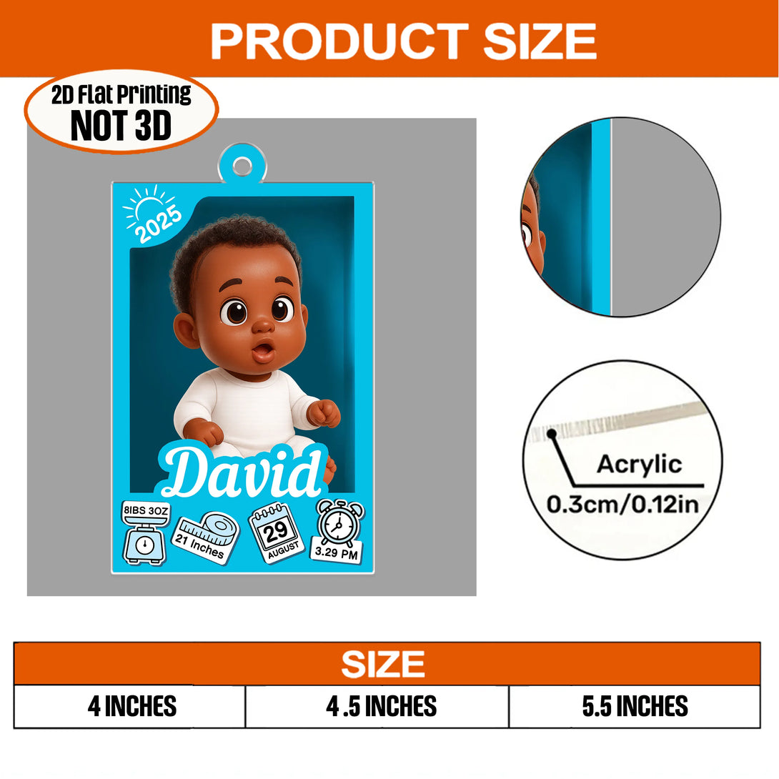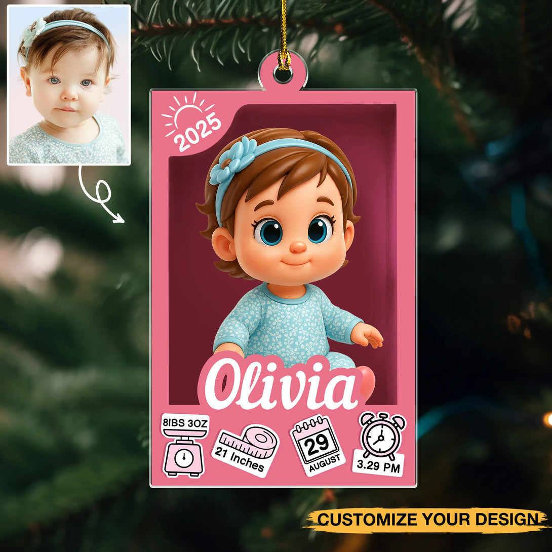 Celebrate the joy of your baby’s arrival with this personalized acrylic ornament. Featuring your child’s photo, name, and birth details (weight, height, date, and time), this keepsake beautifully captures their first precious moments. The vibrant 2D design makes it a heartfelt decoration for your Christmas tree, nursery, or as a thoughtful gift for new parents.