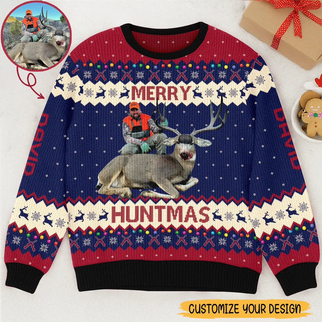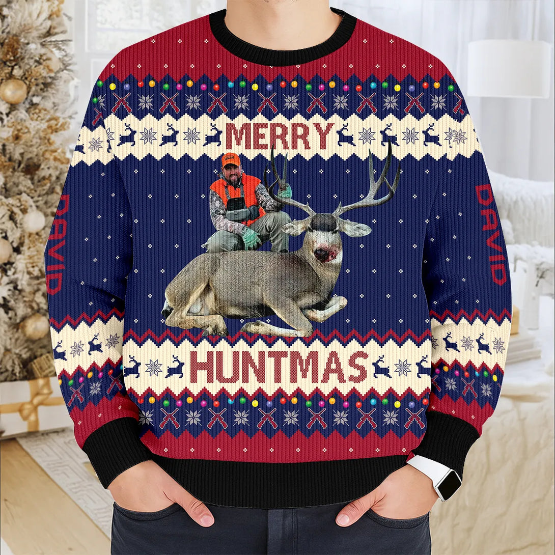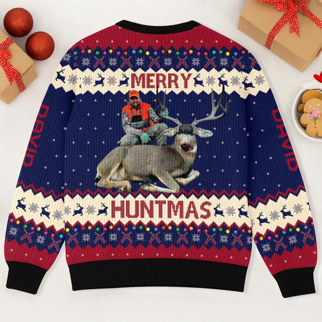 Upload Photo Merry Huntmas Christmas Personalized Ugly Sweater