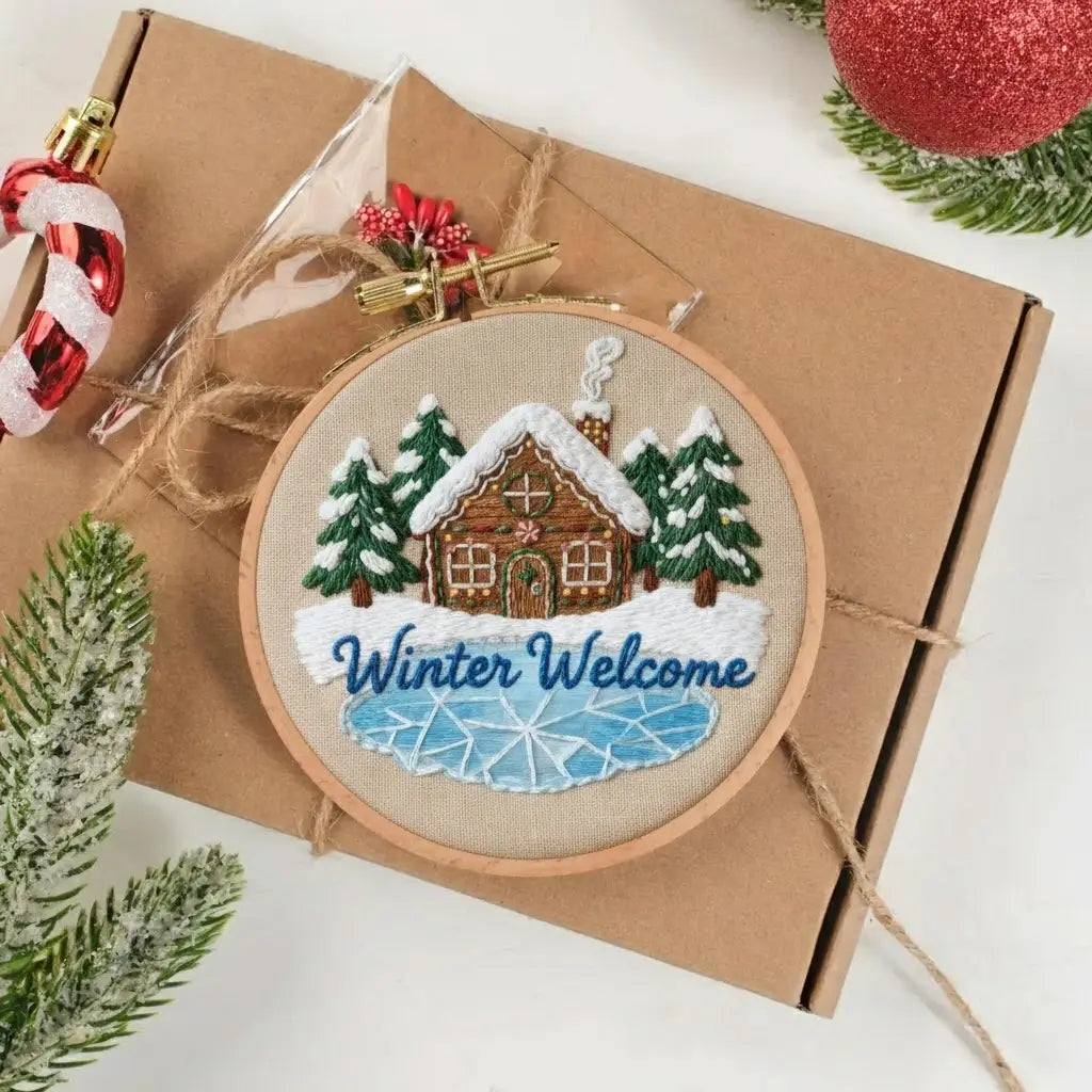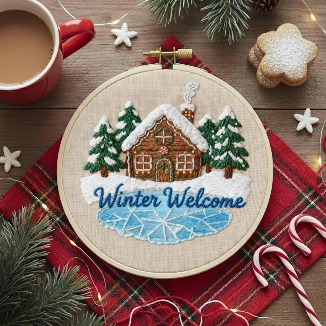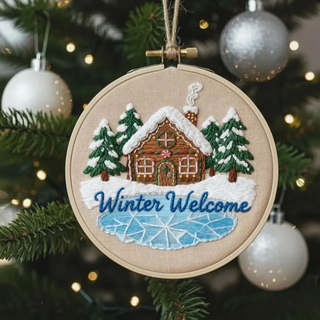 Winter Welcome Gingerbread Embroidery Ornament - Personalized Christmas Decor